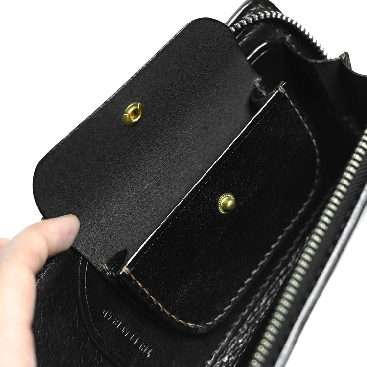 지폐를 접지 않고 보관할 수 있을 만큼 충분한 수납공간을 갖추었으며, 내부에는 동전 주머니와 카드 슬롯이 함께 구성되어 있습니다.