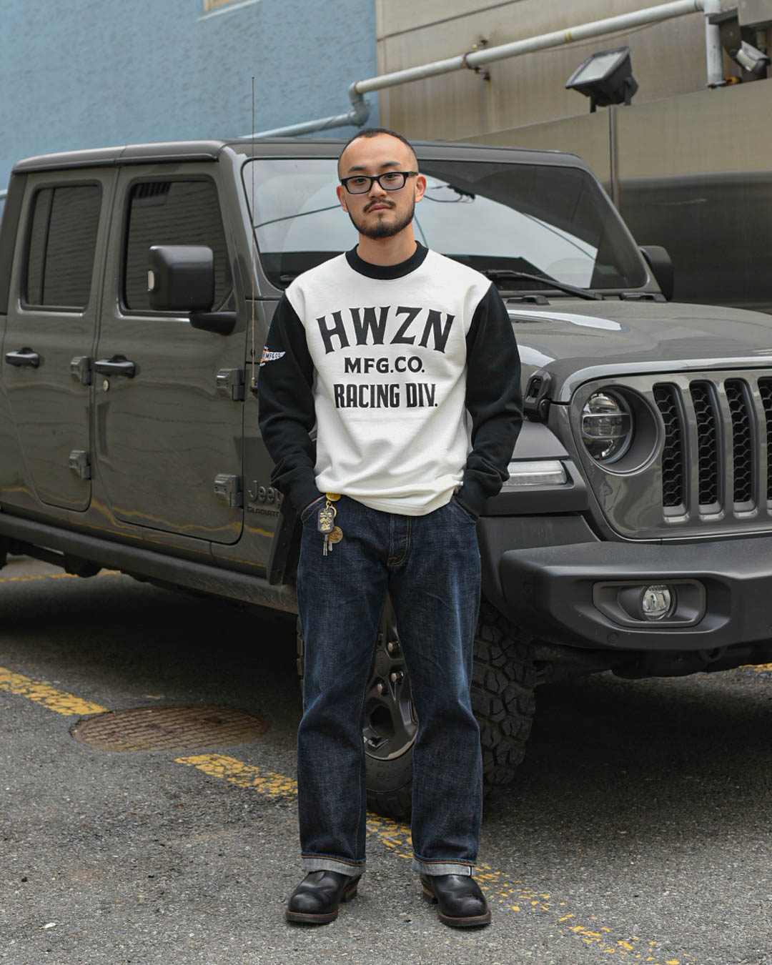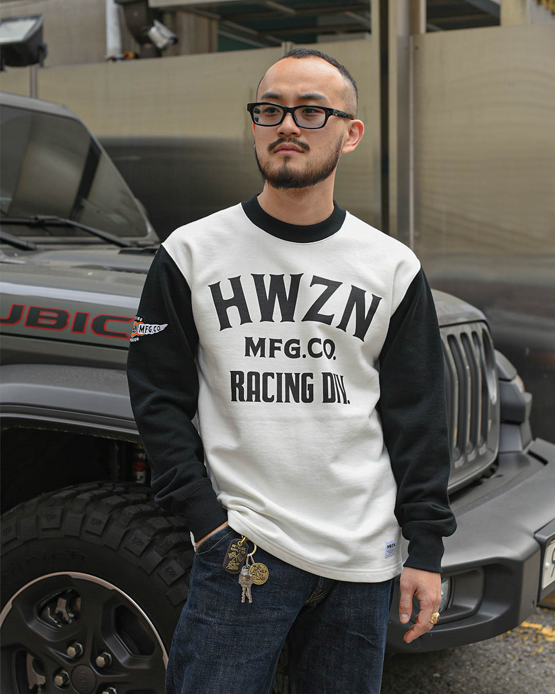 탄탄한 고온즈 원단에 레이싱 저지 분위기를 담아서