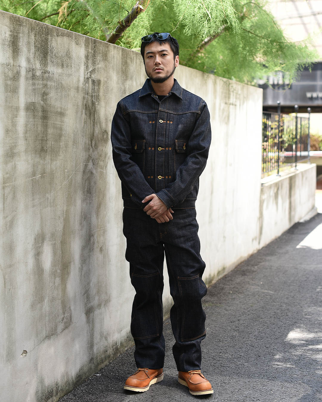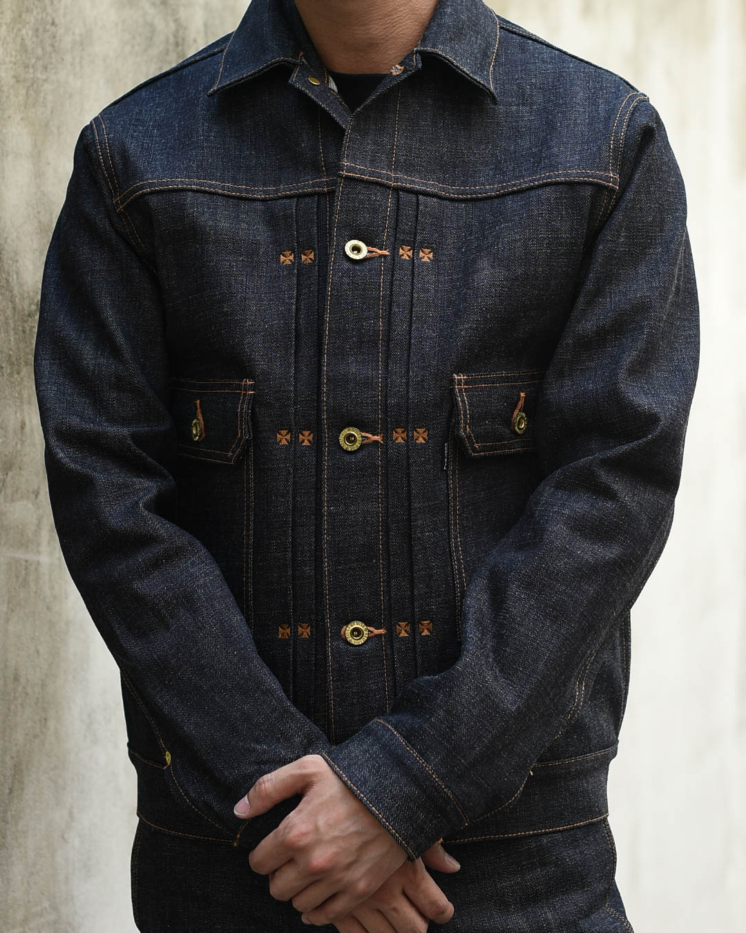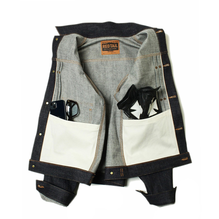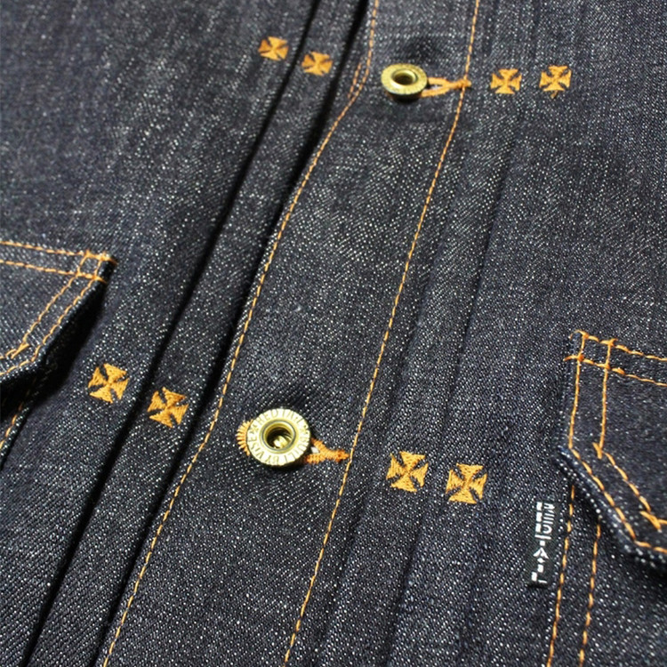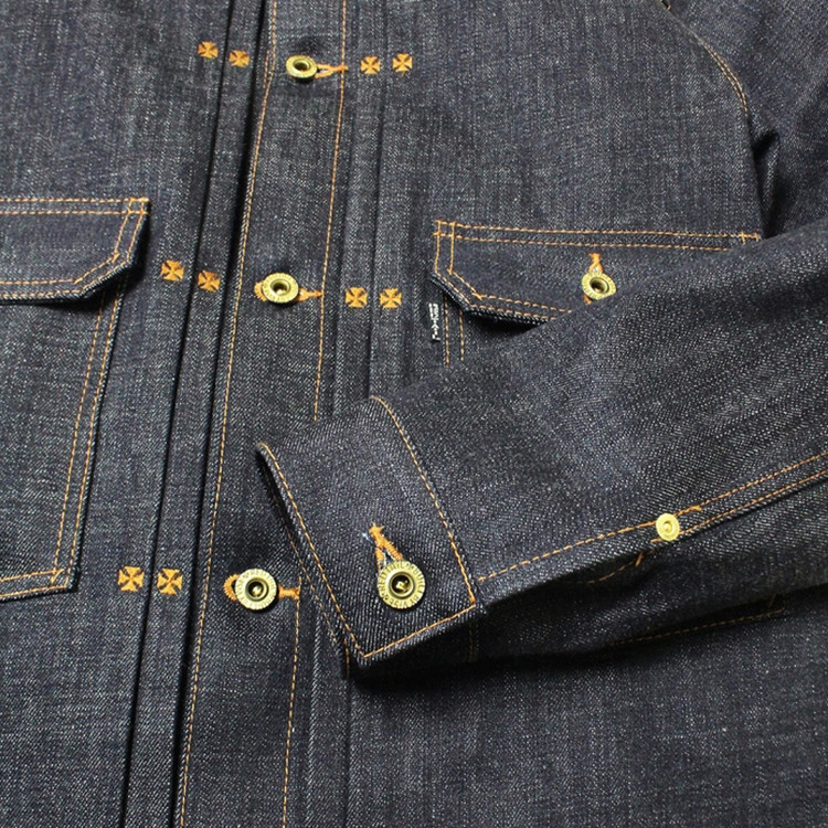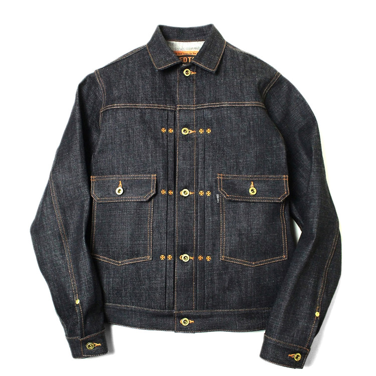 구식 역직기로 직조한 오리지널 셀비지로 제작된 데님 자켓입니다..
