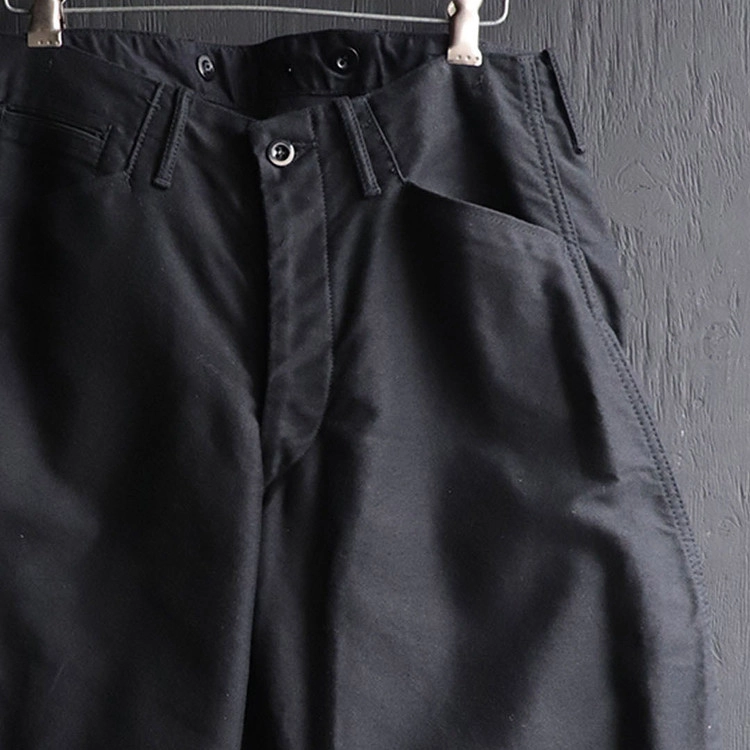 폭이 좁게 봉제된 더블 립포켓이나 무릎 안쪽의 패치 등 내구성을 고려하며