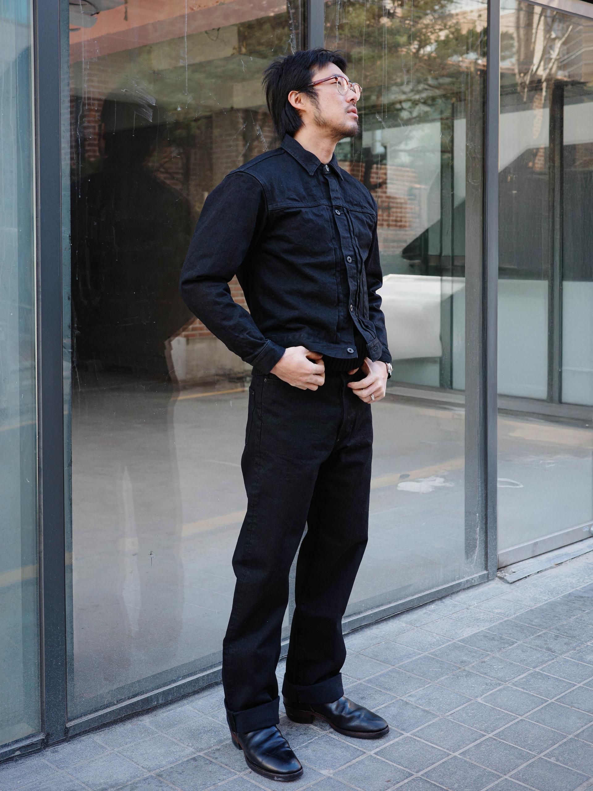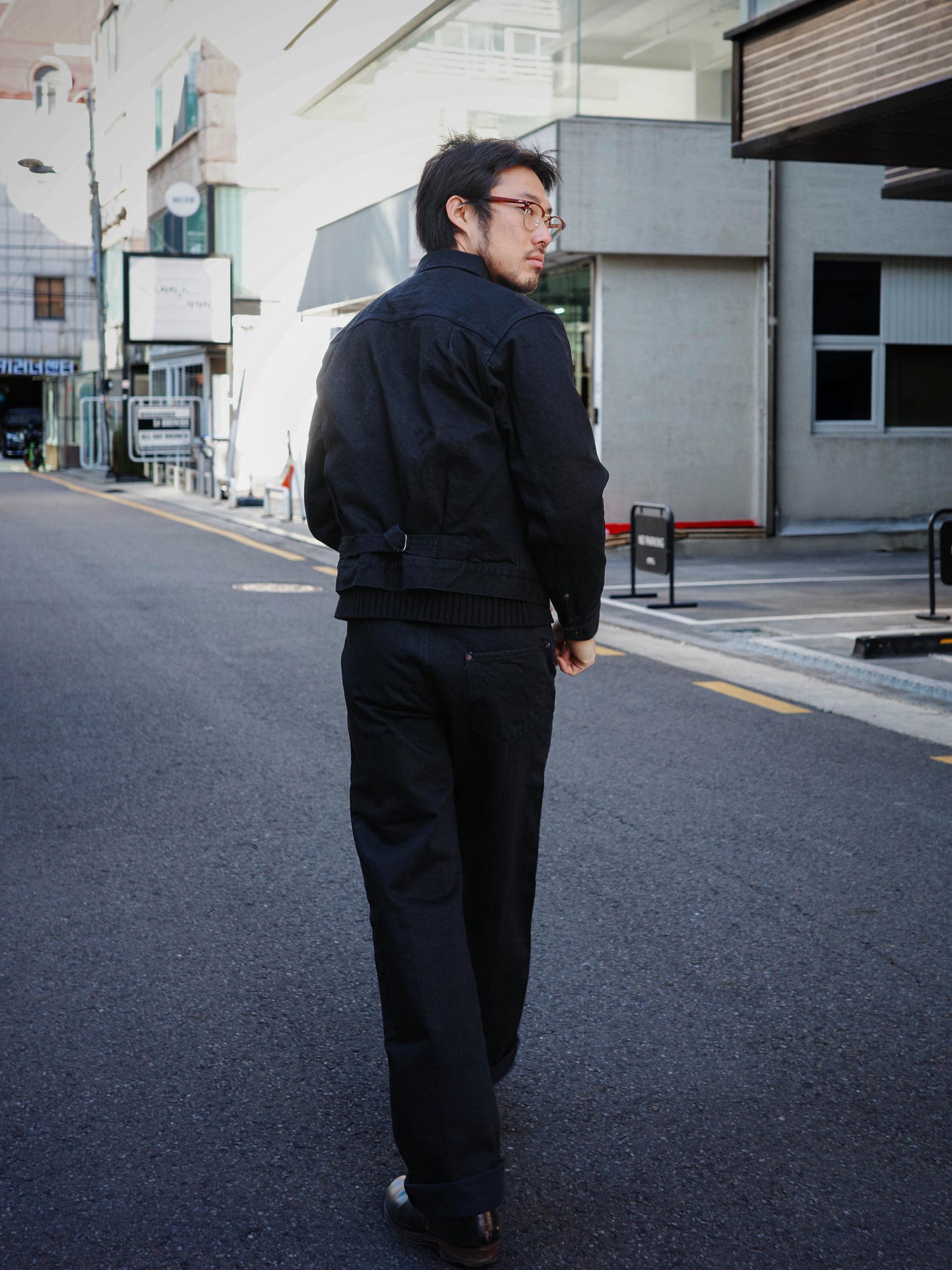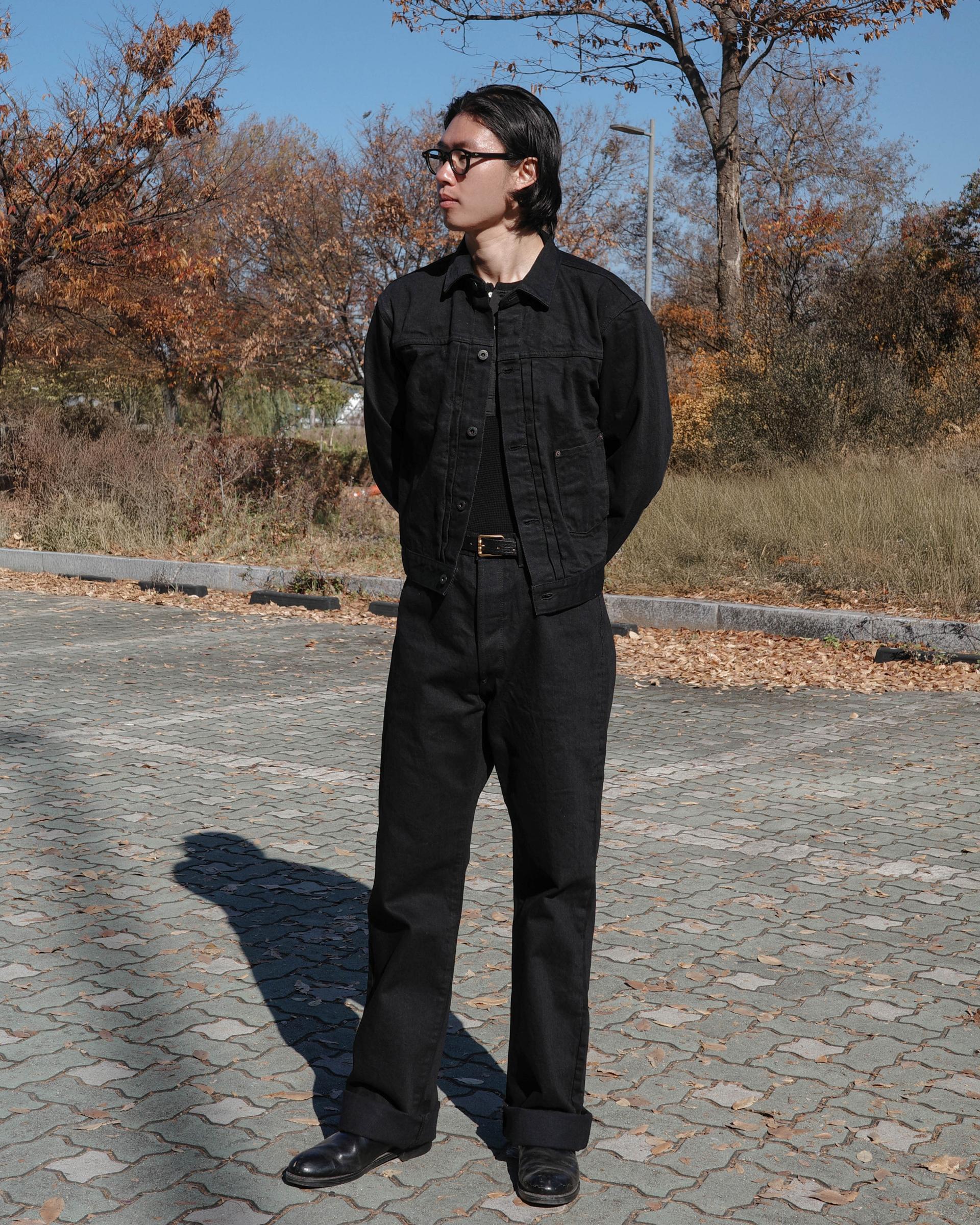1890~1920년대의 디테일을 재현한 짧은 기장의 블랙 데님 자켓
