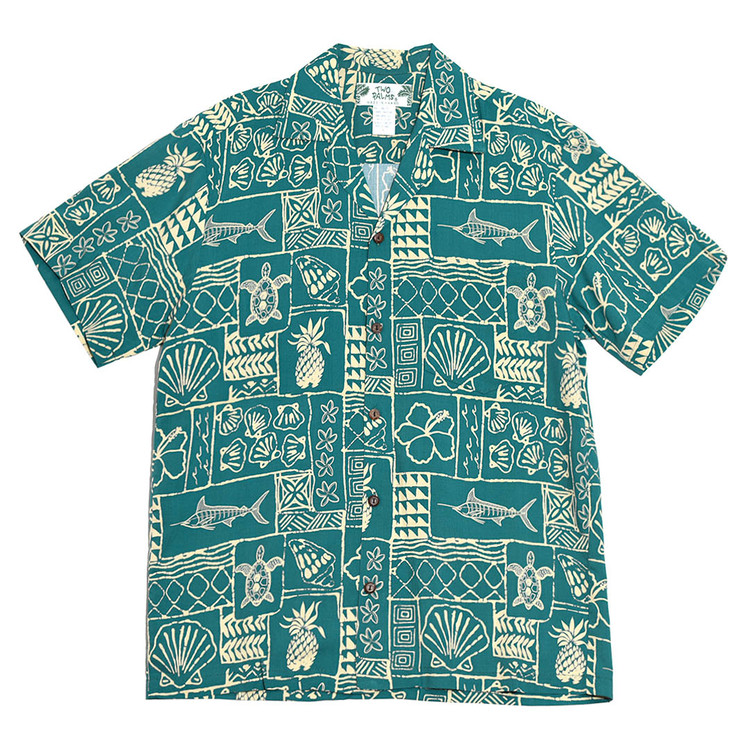 투팜즈의 알로하 셔츠는 코코넛 단추를 사용하였고 100% 레이온 원단으로 촉감이 부드럽고 더운 날씨에도 시원함을 유지합니다.