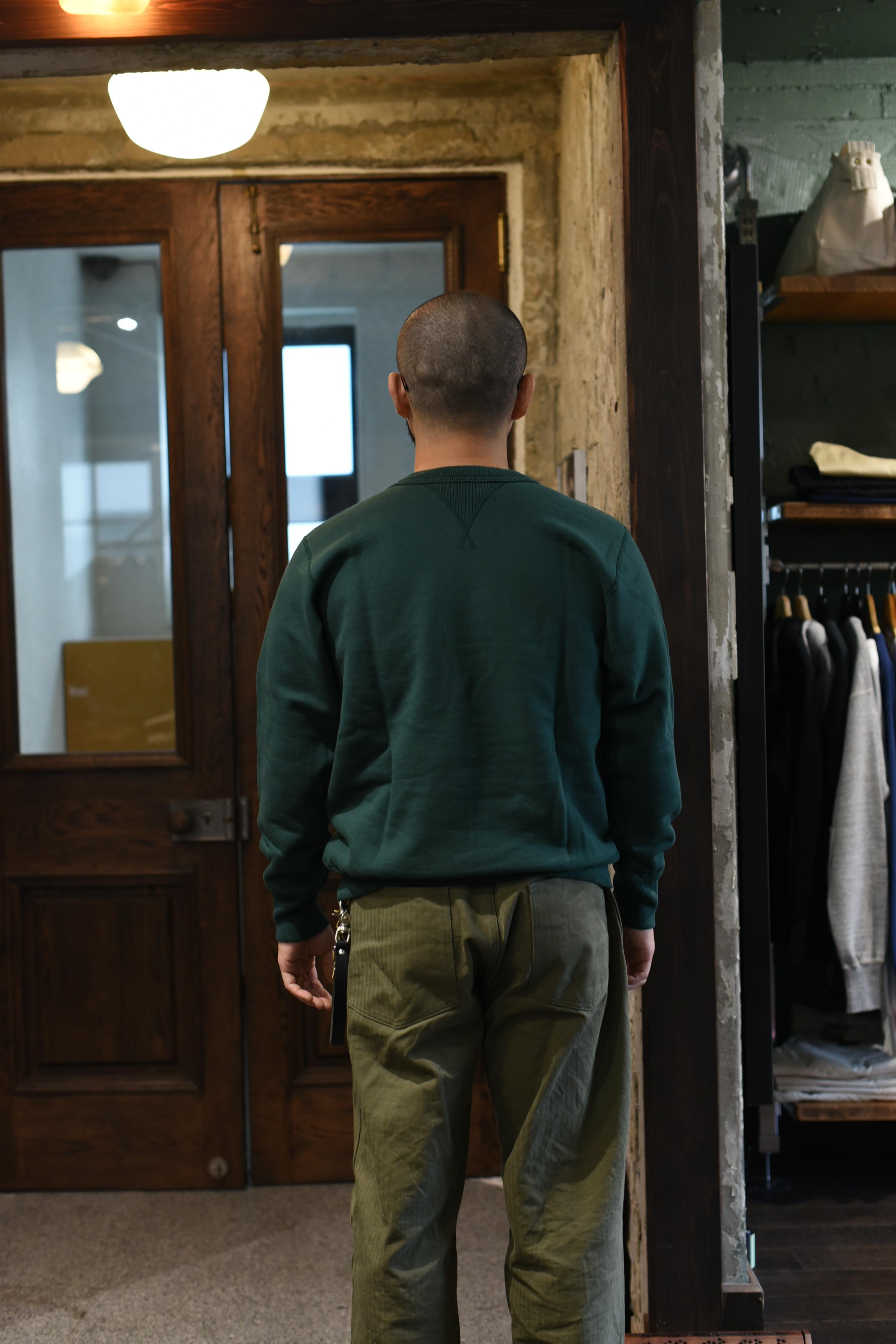 앞 뒷면 양쪽의 넥 라인에 거셋이 달린 형태의 스웨트 셔츠