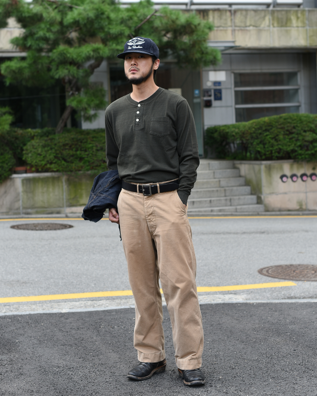 오리지널 천축 원단이 사용된 OD 헨리 롱슬리브 티셔츠입니다.