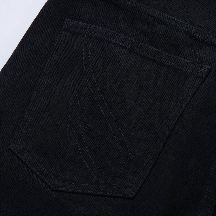위사, 경사를 모두 검정 색을 사용하여 색이 쉽게 빠지지 않는 13oz의 선염 블랙 데님을 사용한