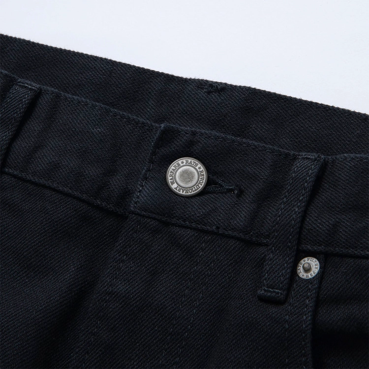 13oz 블랙 데님으로 제작된 랏츠의 모드 슬림 스트레이트 블랙 데님 팬츠입니다.
