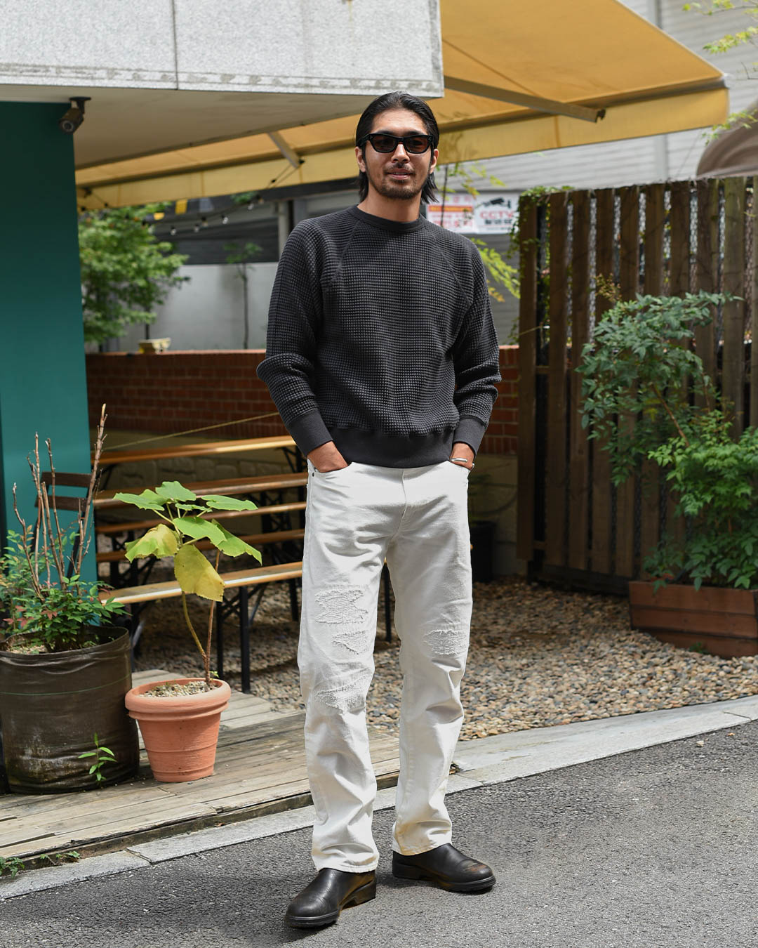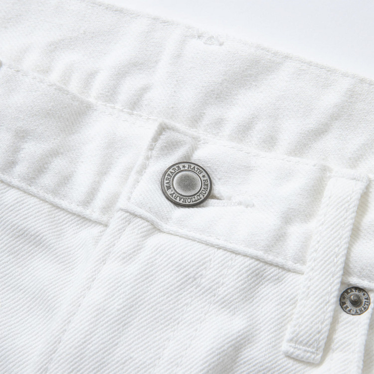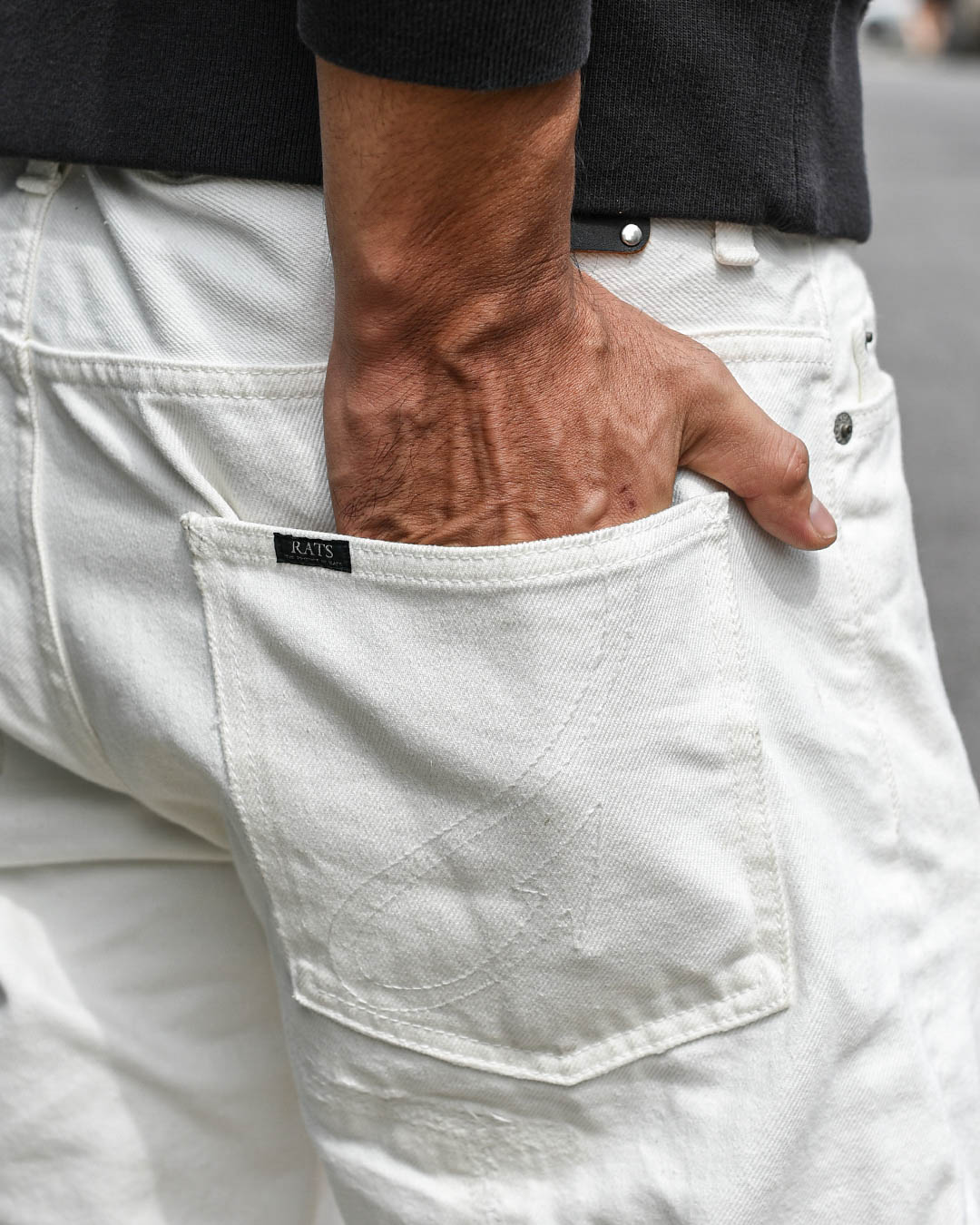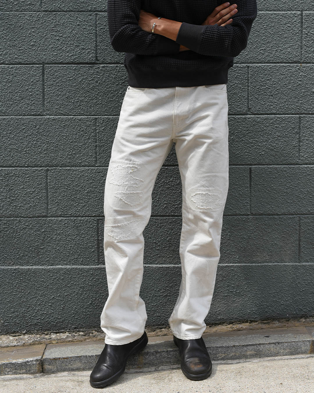 13.5oz 화이트 데님 원단을 사용한 5포켓 데님 팬츠입니다.