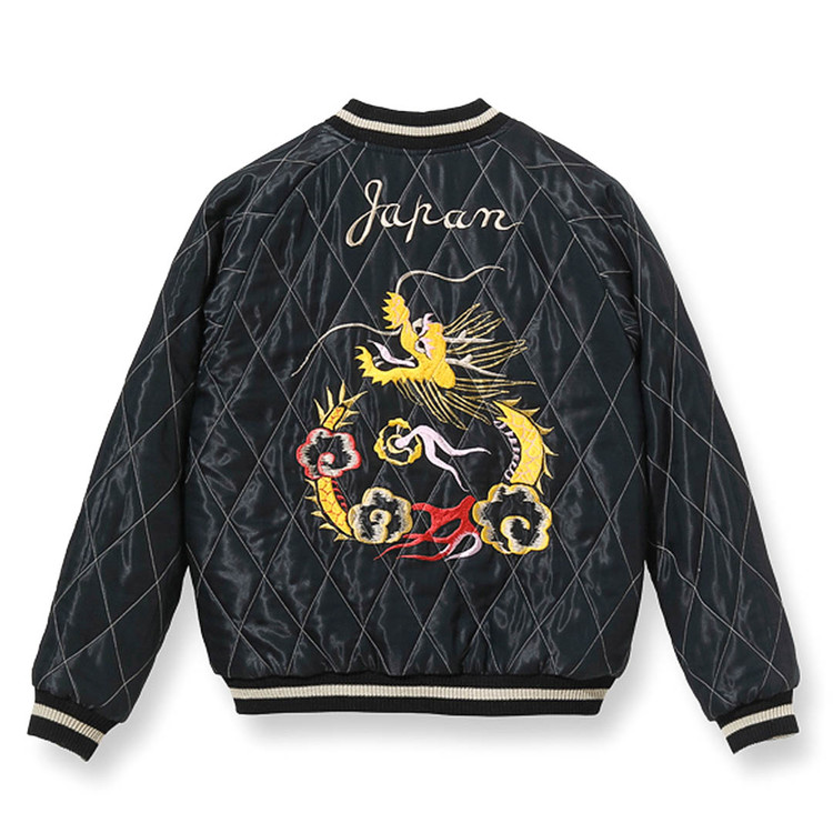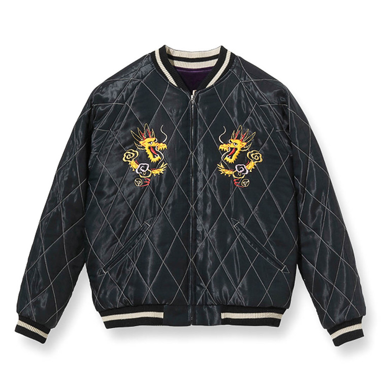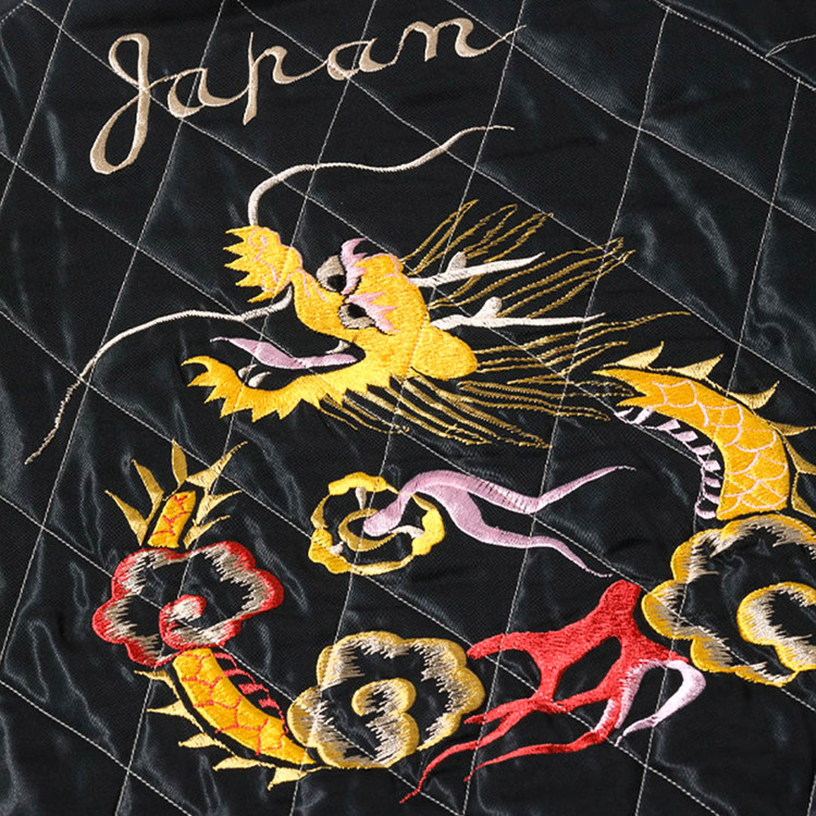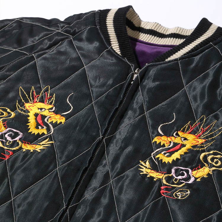 리버서블 면은 블랙 바디에 금색 자수실로 표현한 용과
