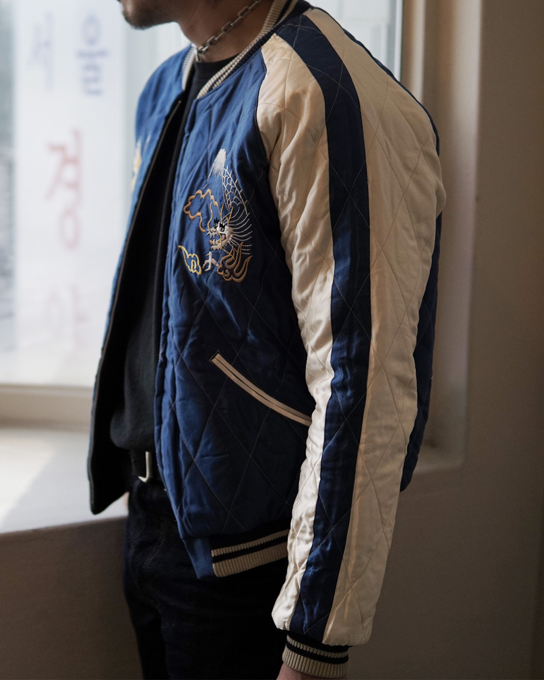 초기 수베니어 자켓은 아세테이트 원단에 리버서블 사양이 많지만,