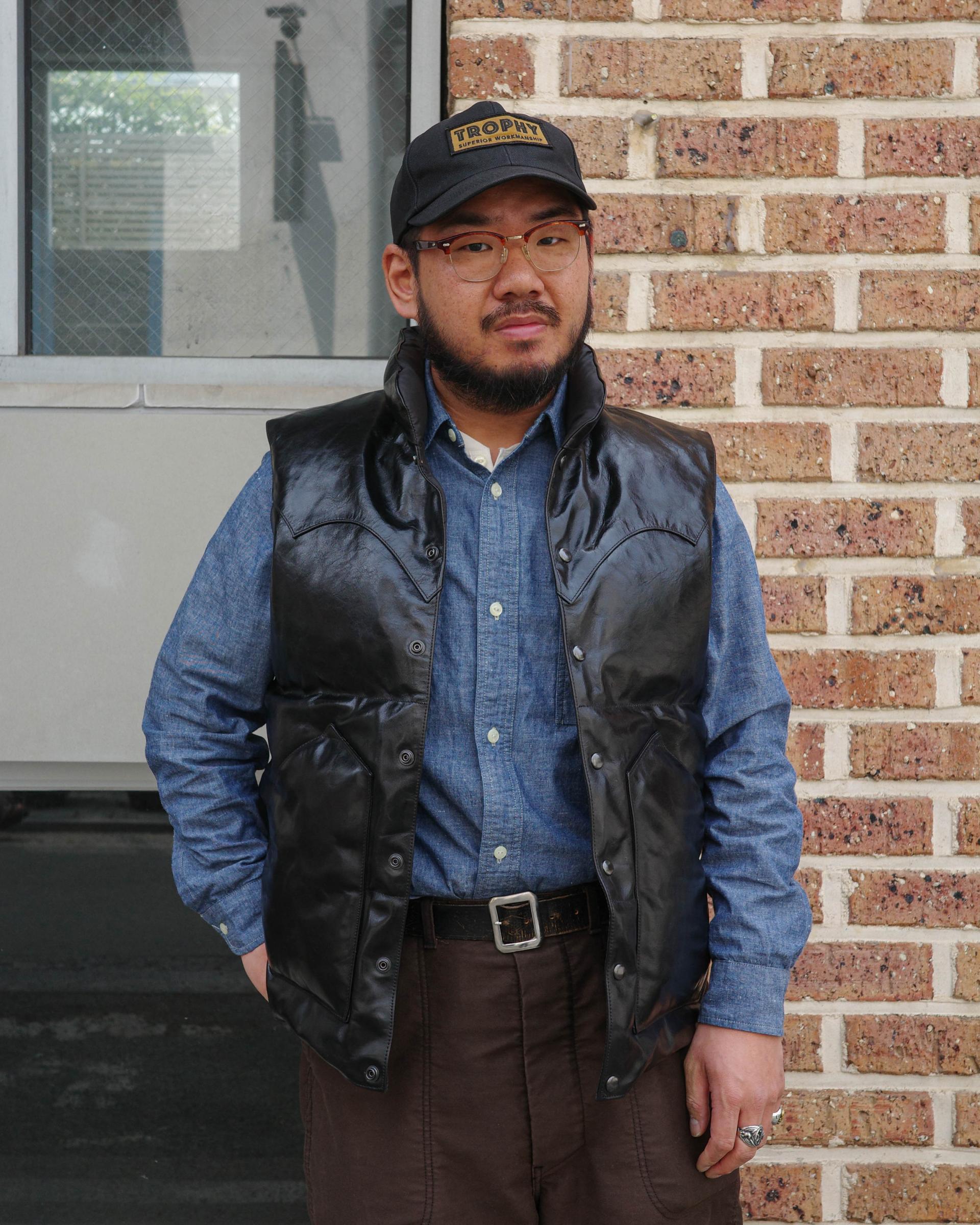Horsehide Down Vest 'CHALLENGER' [Black]