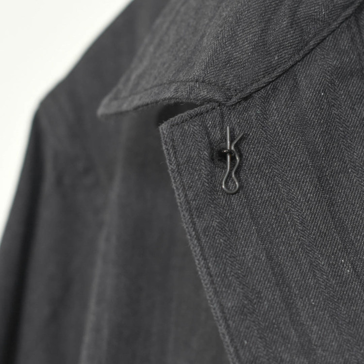 넓은 암홀과 자엽스럽게 떨어지는 A라인 실루엣에 허리 부분에 있는 패치 포켓,