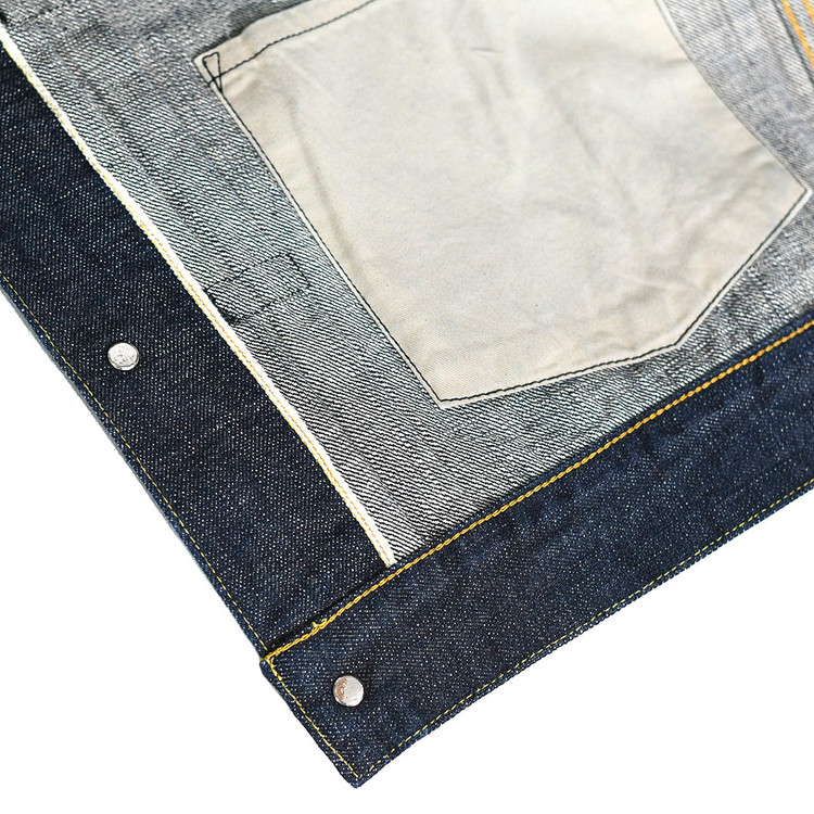 굵고 거친 실은 구형 역직기를 통해 느슨하게 꼬아내었고 셔틀직기로 짠 셀비지데님은 독특한 소재감을 가지게 됩니다.