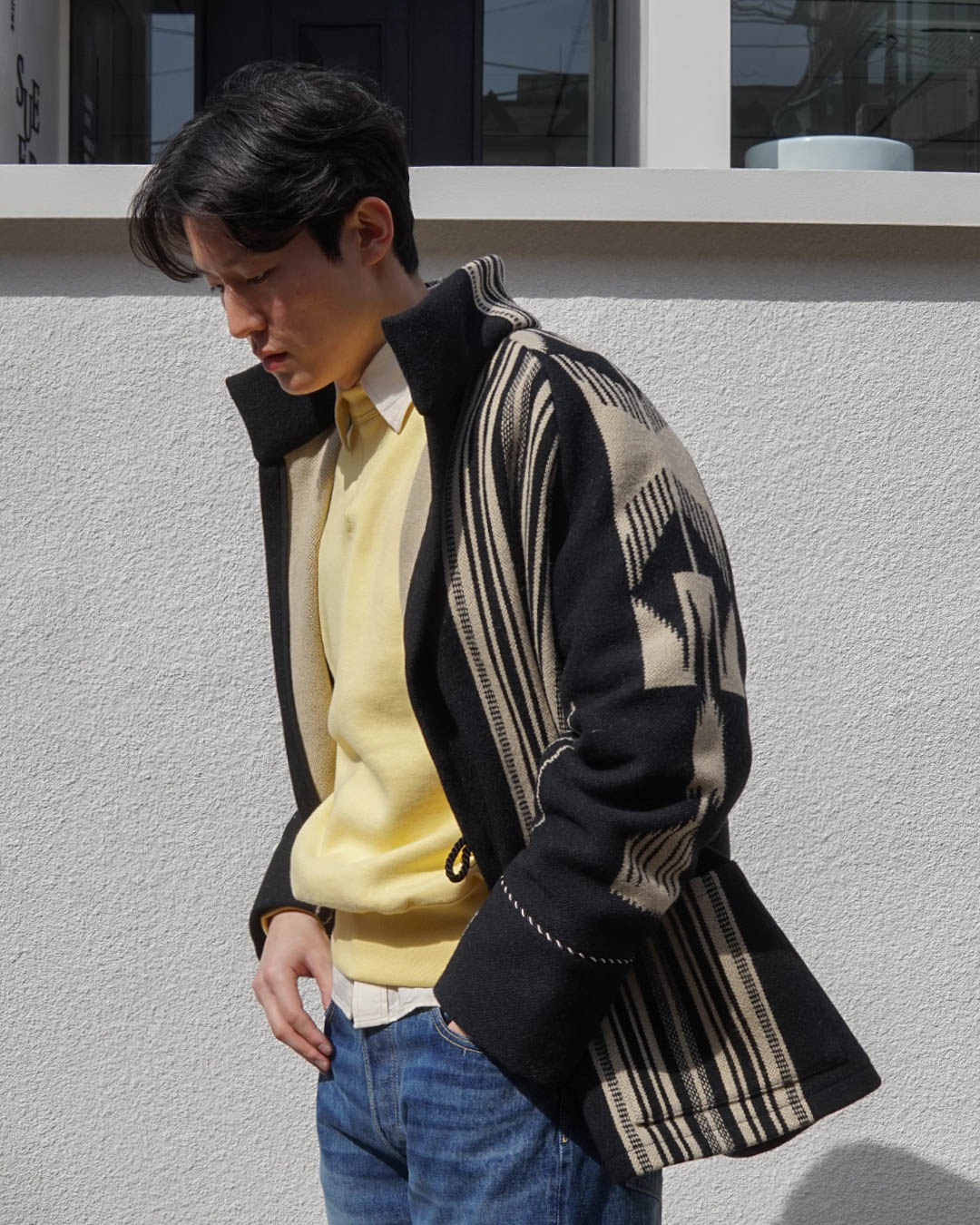 특히 데님과 궁합이 좋아 데님 셋업과의 스타일링하기 좋은 한장입니다.