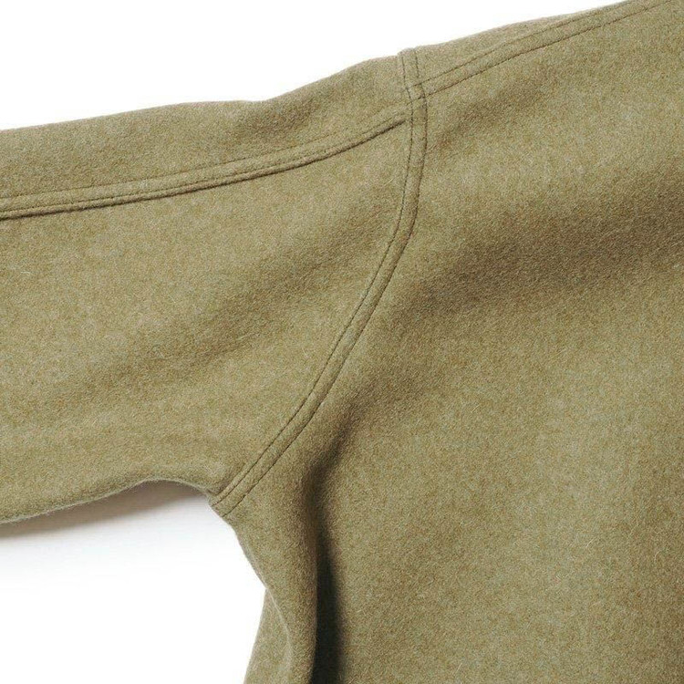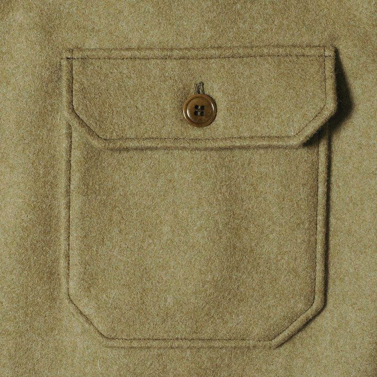 흔하지 않은 옅은 올리브 색상도 이 자켓의 특징으로 사용된 울 리브도 같은 톤으로 제작되었습니다.