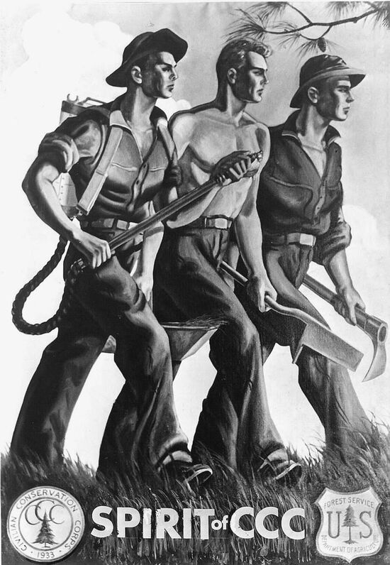 CCC(시민 보전 부대)는 취업난으로 힘들었던 18~25세 사이의 젊은 남성 실업자들을 고용하여