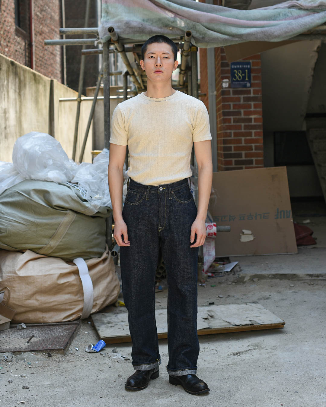 굵고 거친 실은 구형 역직기를 통해 느슨하게 꼬아내었고 셔틀직기로 짠 셀비지 데님은 독특한 소재감을 가지게 됩니다.