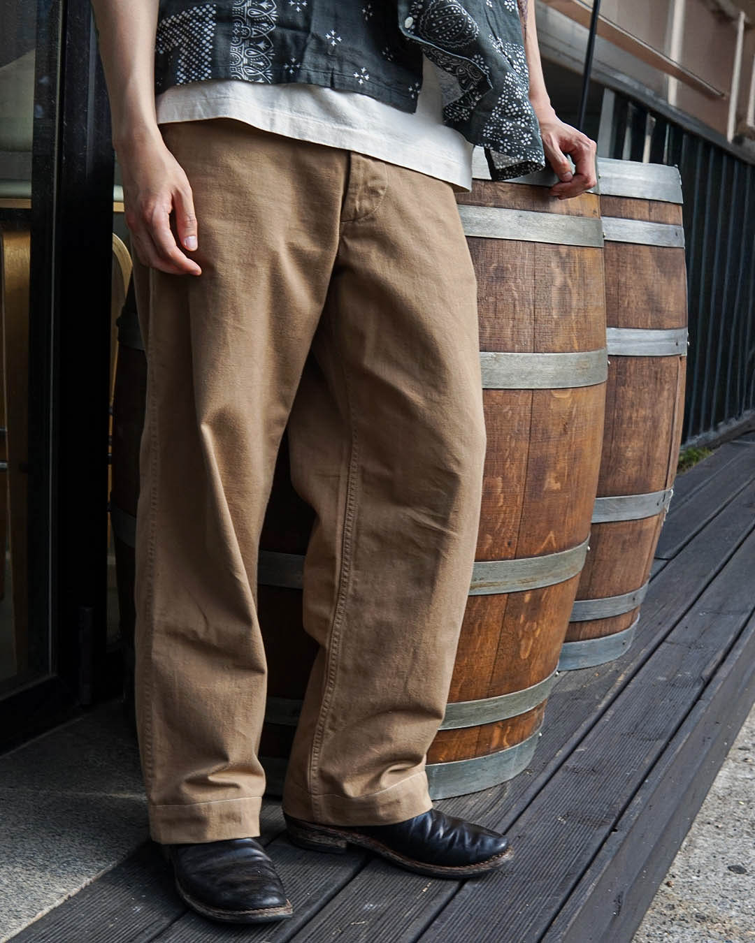 라스트 리조트 치노 원단은 데님과 마찬가지로, 여러 종류의 빈티지 M41 카키 팬츠 중에서 엄선된 개체를 해체하여,