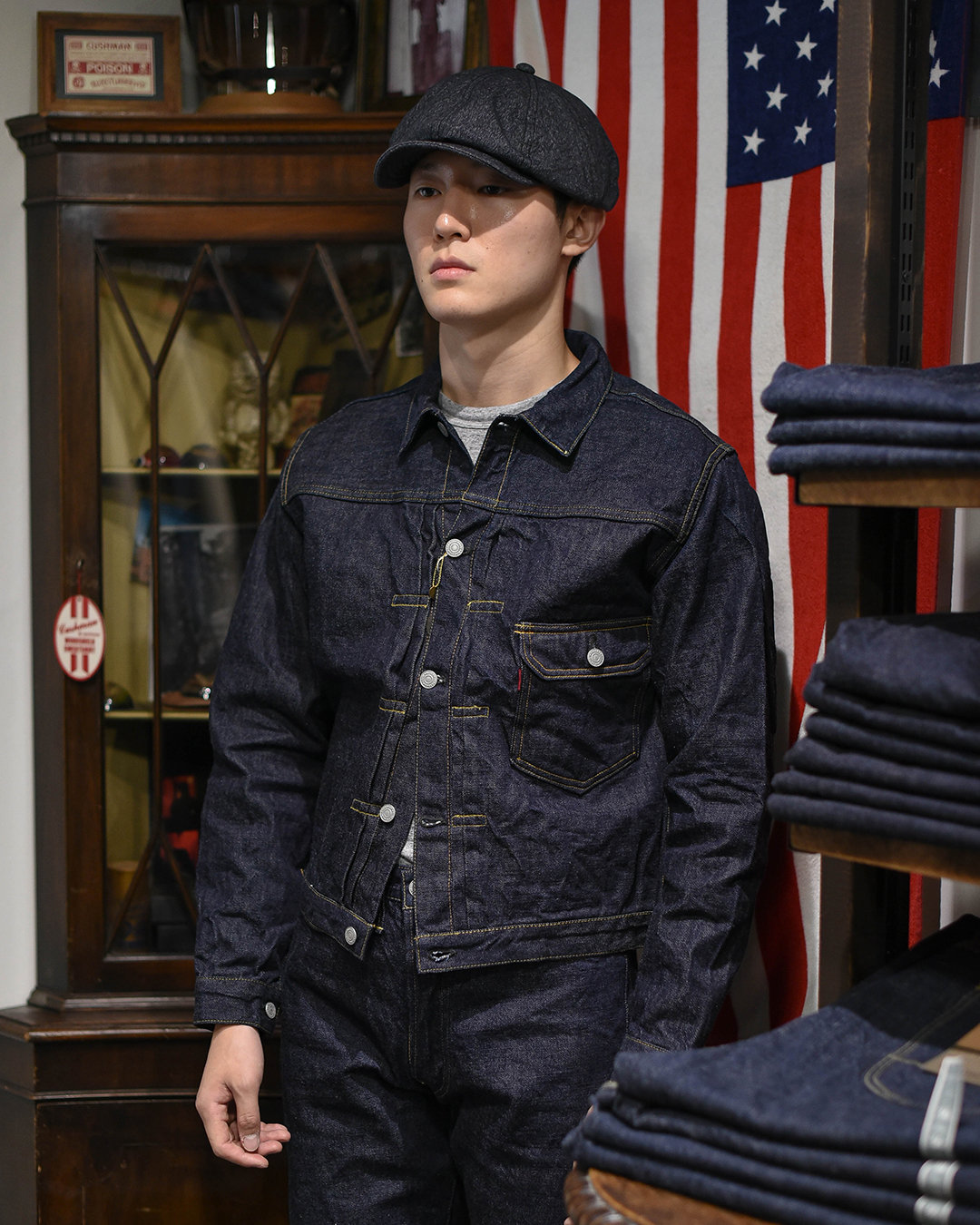 1930년대 후반, 대전 모델이 등장하기 전 시기의 디테일을 충실히 재현한 퍼스트 모델 데님 자켓입니다.