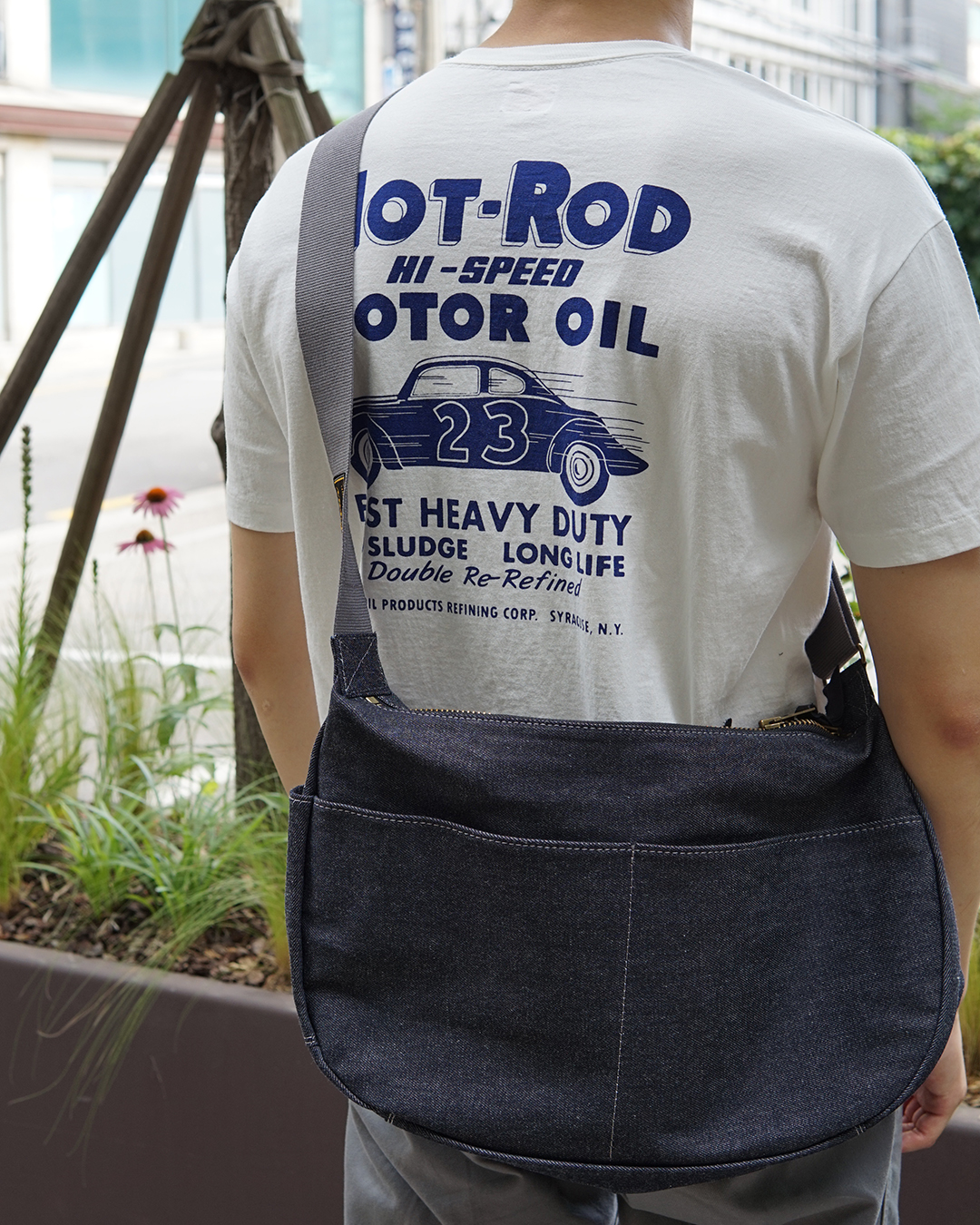 Blue Denim과 밀리터리 스타일의 Hunter Camo Duck 원단으로 제작한 새로운 메신저 백