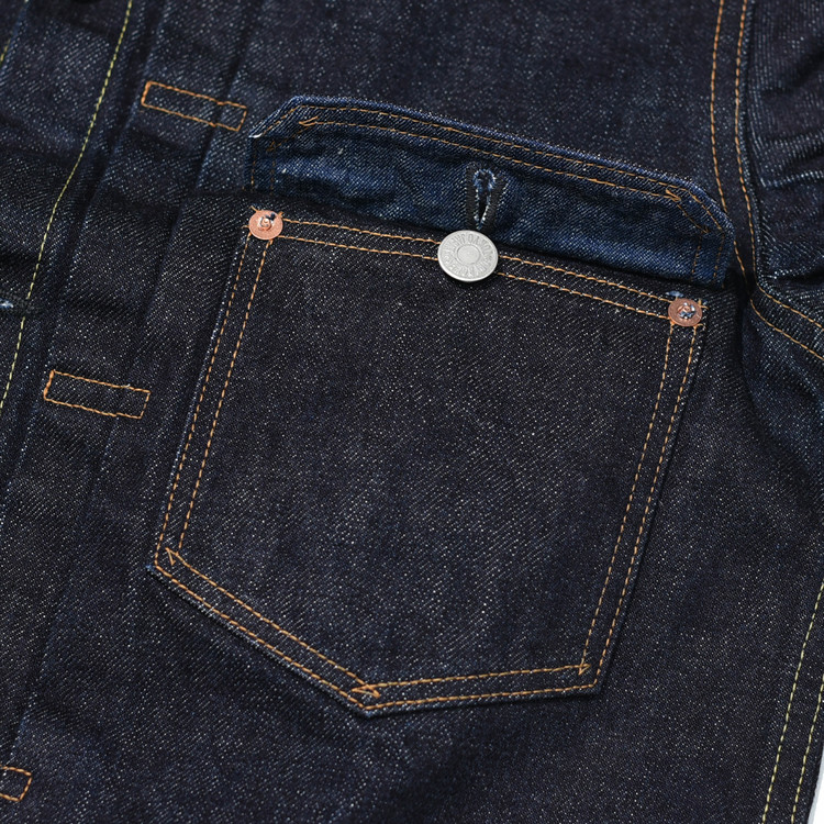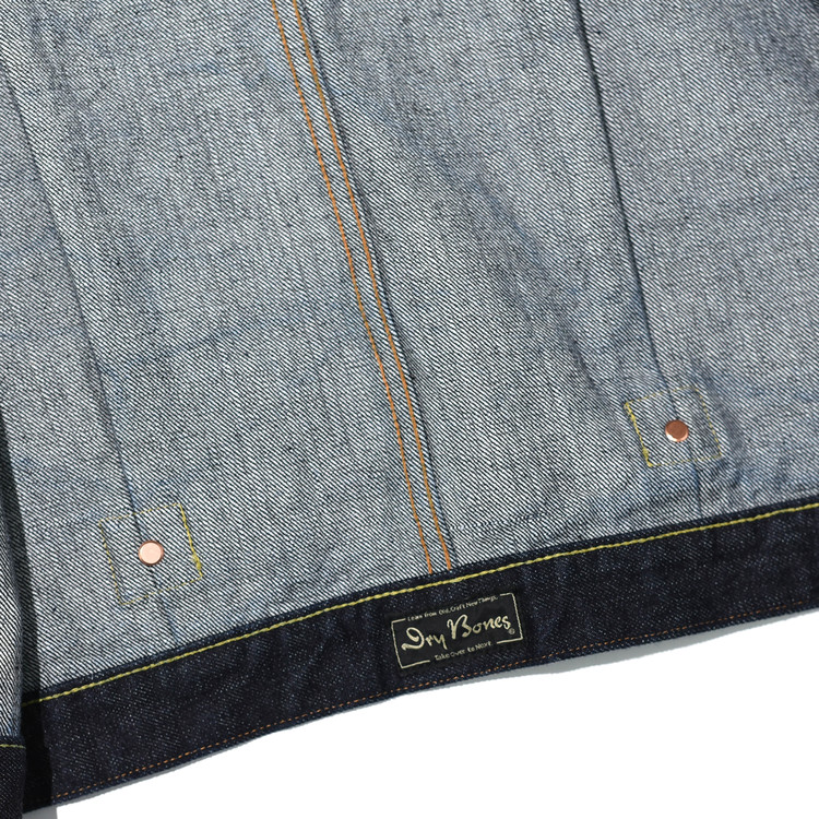 한쪽에 플랩 포켓이 달린 데님 자켓을 Dry Bones의 해석으로 복각한 제품입니다.