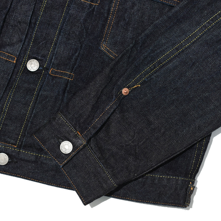 원단은 경사 7수, 위사 6수의 실을 사용해 짠 13.5oz의 슬러브 데님으로 제작되었습니다.