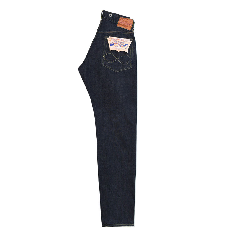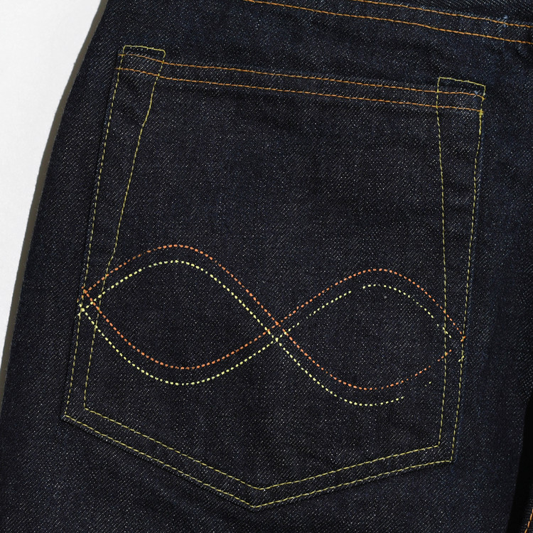 구직기로 짠 13.5oz의 셀비지 데님은 경사 6수, 위사 7수의 불균일한 실을 사용했고