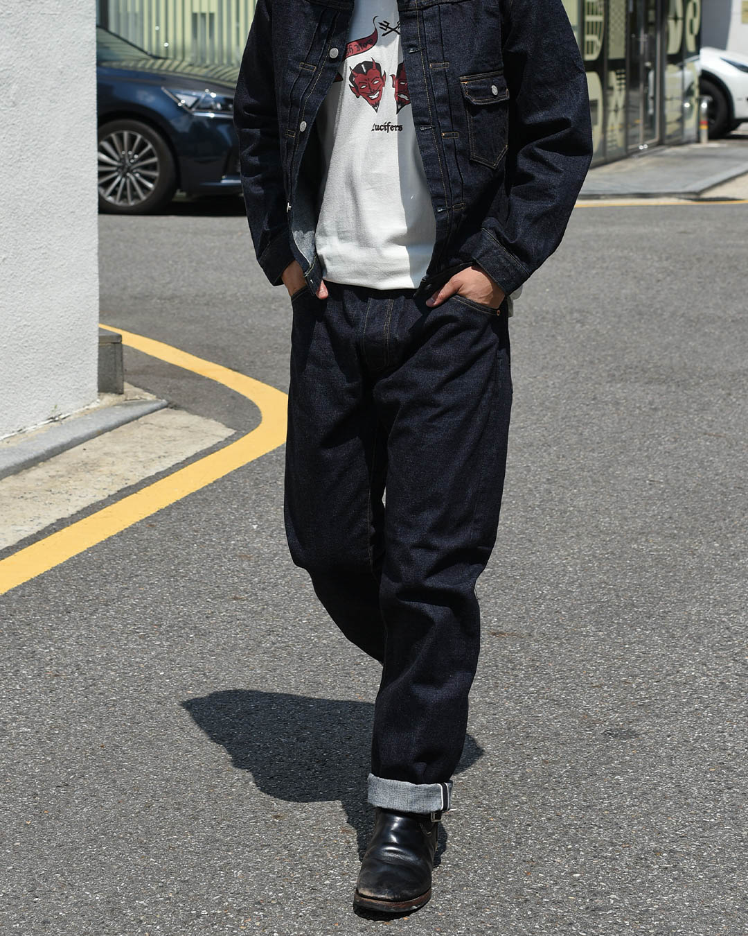 이외에도 크로치의 접힘 봉제, 오프셋된 벨트 루프, 곡선형 백포켓 스티치 등, 디테일 하나하나에 빈티지에 대한 존중이 담겨 있습니다.