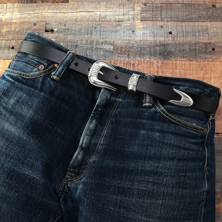 버클, 벨트 루프, 벨트 끝부분에 볼륨감 있는 메탈 파츠를 사용한 웨스턴 벨트