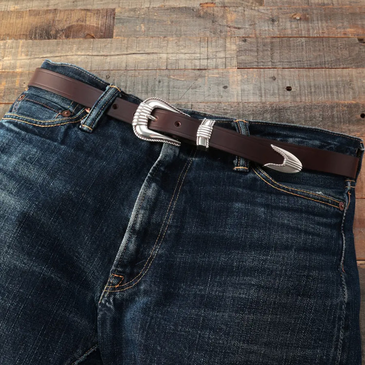 버클, 벨트 루프, 벨트 끝부분에 볼륨감 있는 메탈 파츠를 사용한 웨스턴 벨트