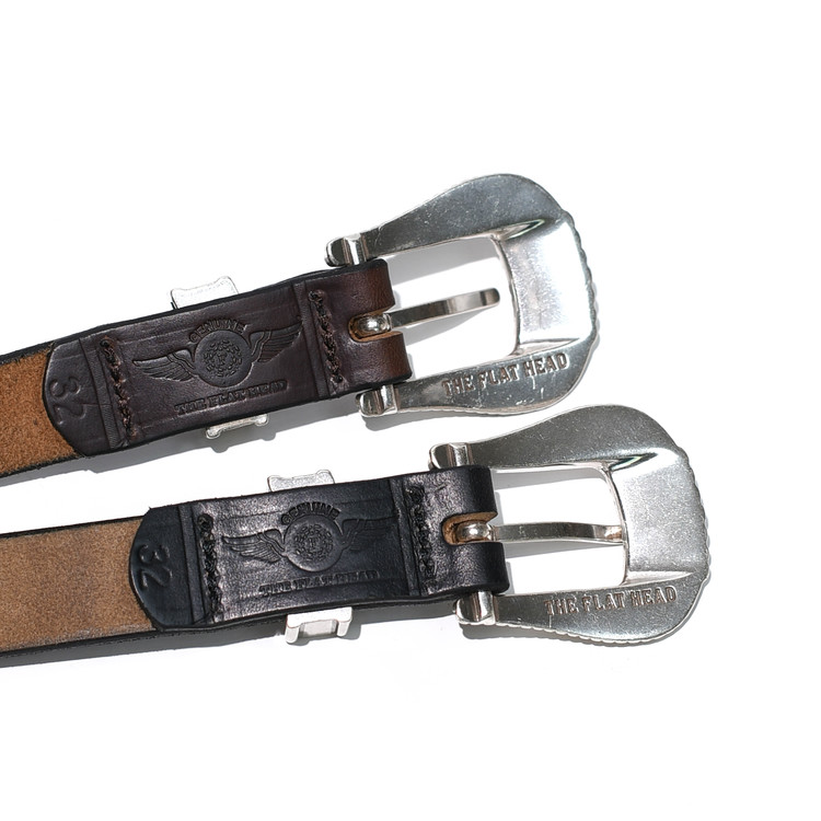 부드럽고 유연한 크롬엑셀 레더를 사용했고 버클 뒷면과 벨트 안쪽에는 브랜드 네임과 브랜드 로고인 플라잉 휠이 각각 각인되어 있습니다.