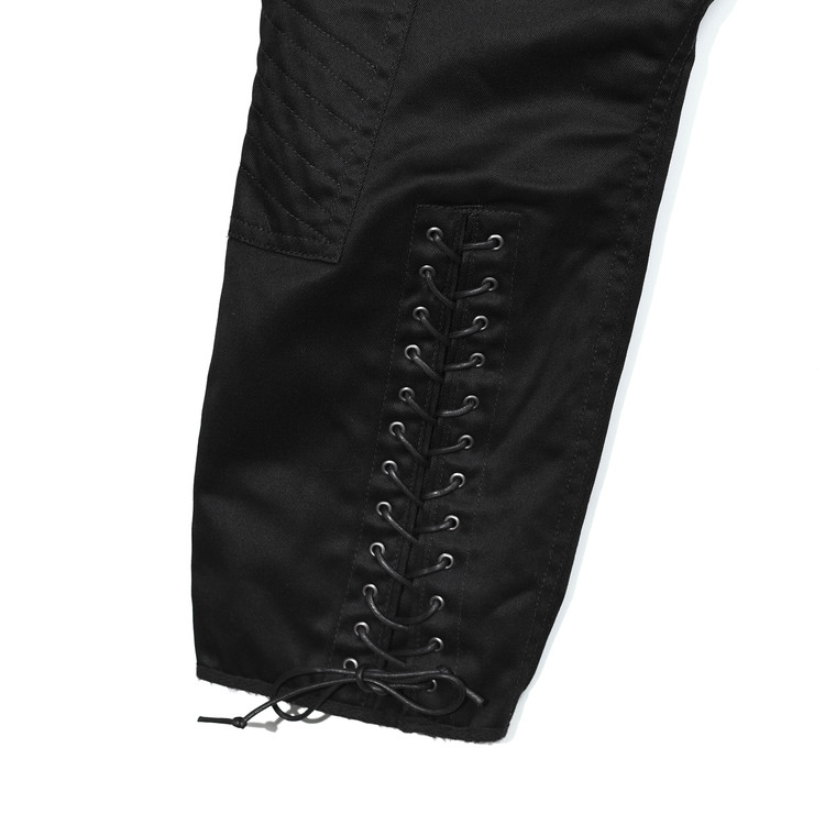 폭이 좁게 봉제된 더블 립포켓이나 무릎 안쪽의 패치 등 내구성을 고려하며