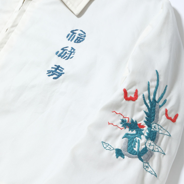 또한 오른쪽 가슴에는 베트남 풍경, 왼쪽 가슴에는 보통 ‘복(福)’ 한 글자만 들어가지만 이 자켓에는 ‘복록수(福禄寿)’ 세 글자,