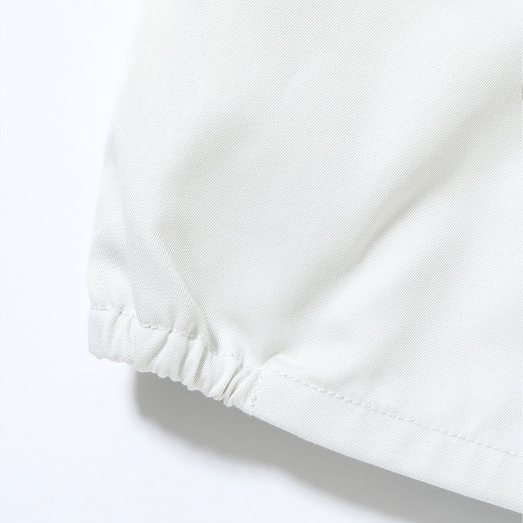 주로 코튼 트윌 원단이나 카모플라주 패턴의 포초 라이너 원단이 사용되었으며, 매트한 질감의 굵은 색실로 수놓은 자수 장식이 특징입니다.