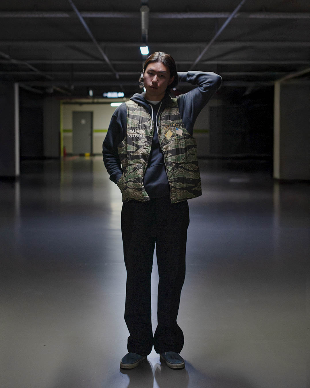 원단은 1960년대 우드랜드 카모플라주 라이너 소재와 타이거 스트라이프를 프린트한 오리지널 나일론 립스탑 소재의 두 가지 버전으로 전개됩니다.