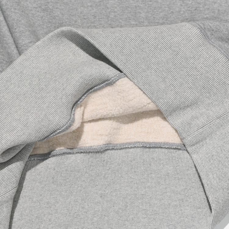 원단은 루프휠 특유의 로우 텐션 방식으로 짜내어, 실 본연의 질감을 살리면서도 포근하고 탄성이 좋은 촉감을 구현했습니다.