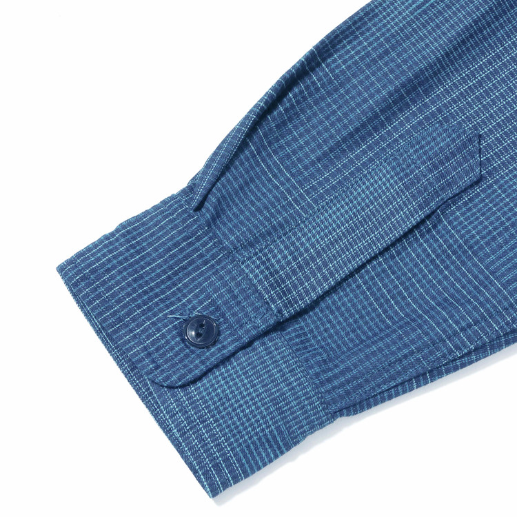옛 원단을 떠올리게 하는 인디고 염색 패치워크 스타일의 원단을 사용한 워크셔츠