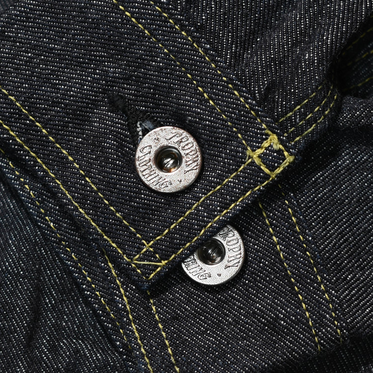 레프트 핸드 트윌은 열을 가하는 방축 가공이 일반적이지만 트로피의 오리지널 데님은 구직기 특유의 원단 질감을 살렸습니다.