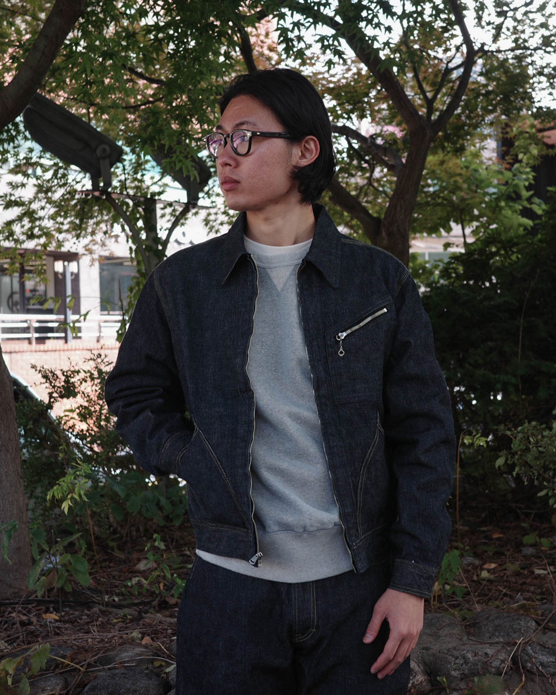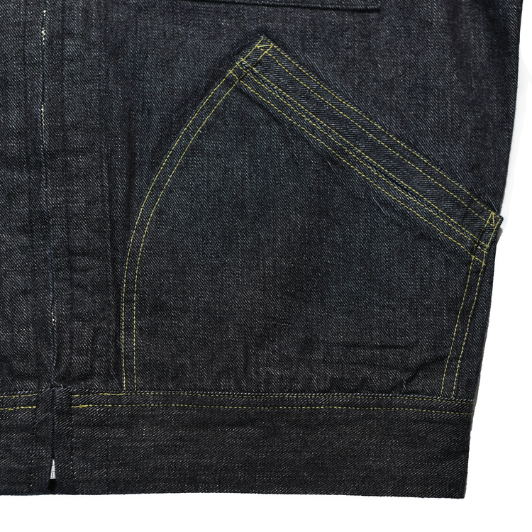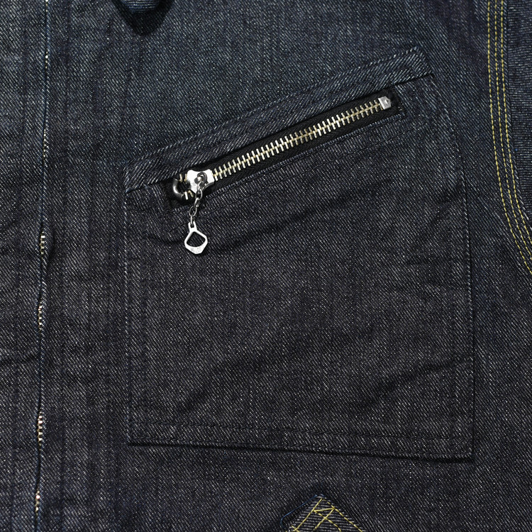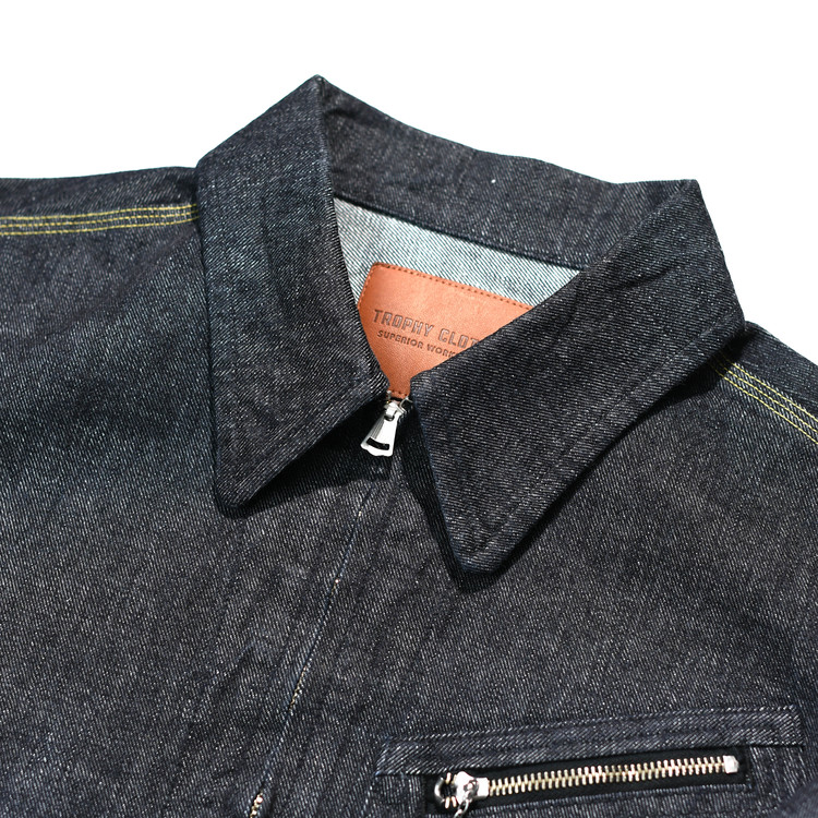 일반적인 라이트 핸드 트윌과 반대 방향으로 직조한 트로피의 오리지널 레프트 핸드 트윌 데님을 사용한 워크 자켓