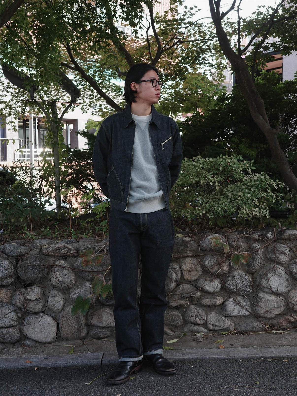 그 결과 시간이 지남에 따라 원단 특유의 기모감과 비틀림, 흐르는 듯 선명한 독자적인 페이딩을 즐기실 수 있습니다.