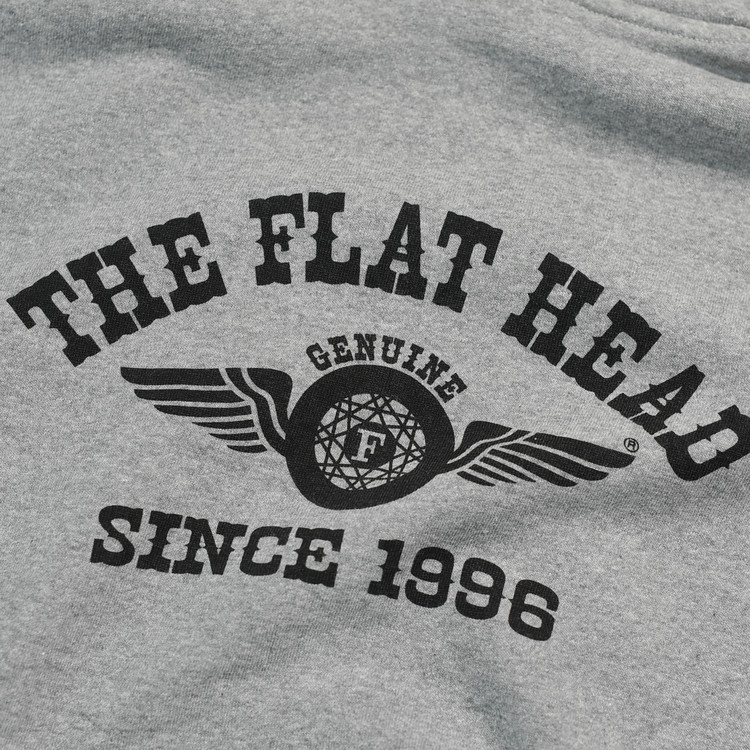 몸판 컬러마다 다른 프린트 기법을 사용해, 플랫헤드의 상징인 플라잉 휠,Flying Wheel 로고를 인쇄했습니다.