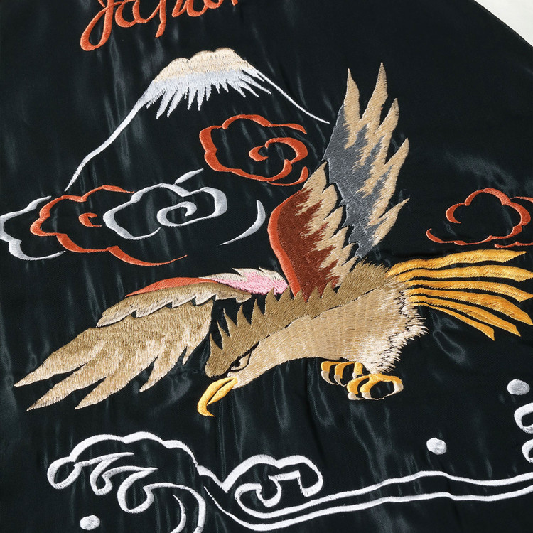 리버서블 면에는 후지산을 배경으로 바다 위를 활공하는 독수리를 담았습니다.