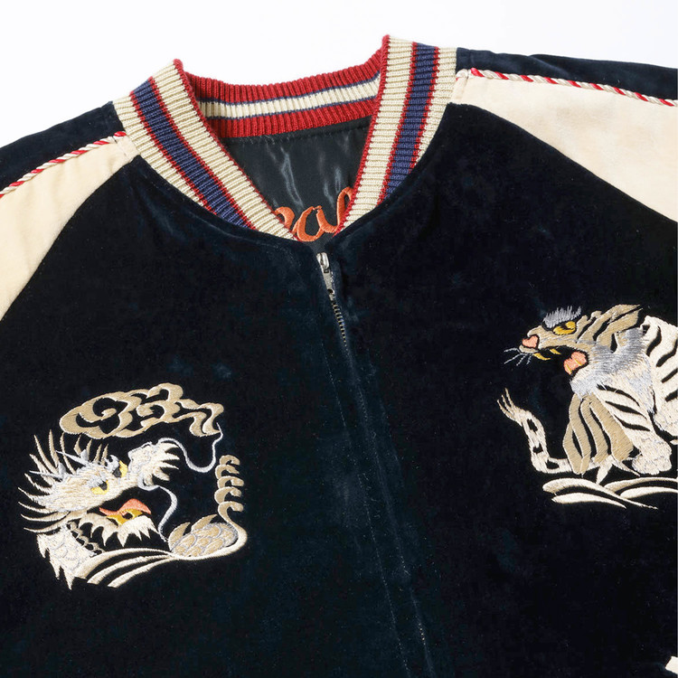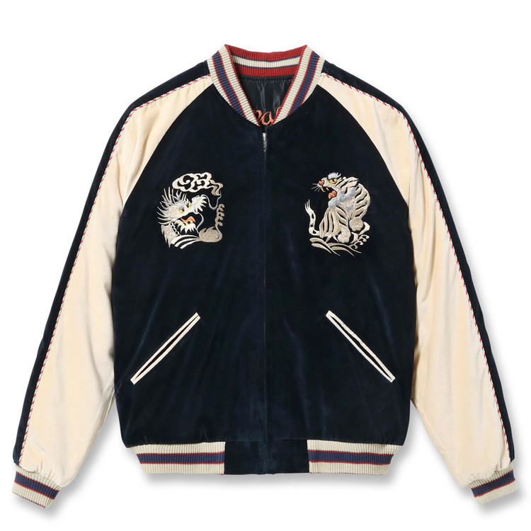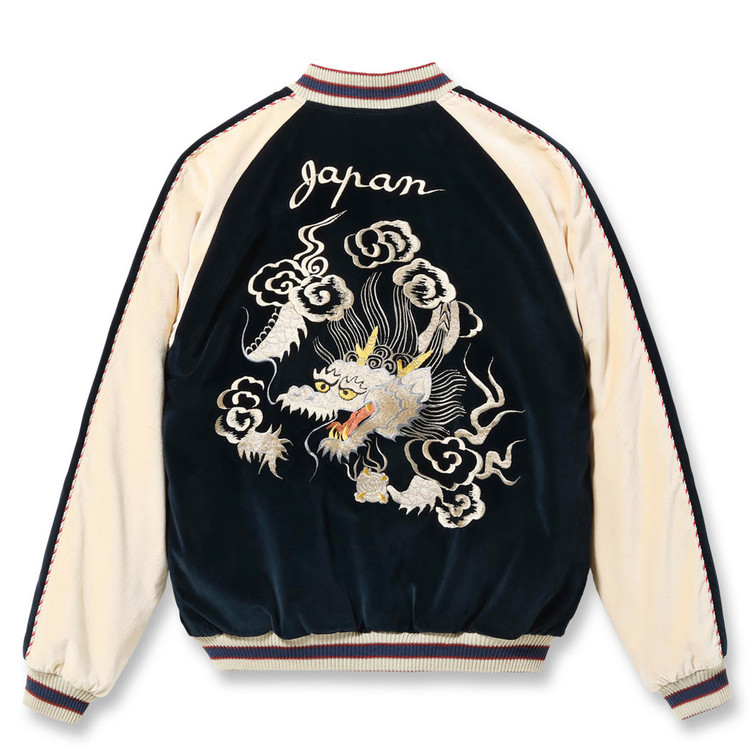 Mid 1950s Style Velveteen (Two-Tone) × Acetate Souvenir Jacket WHITE DRAGON × EAGLE
