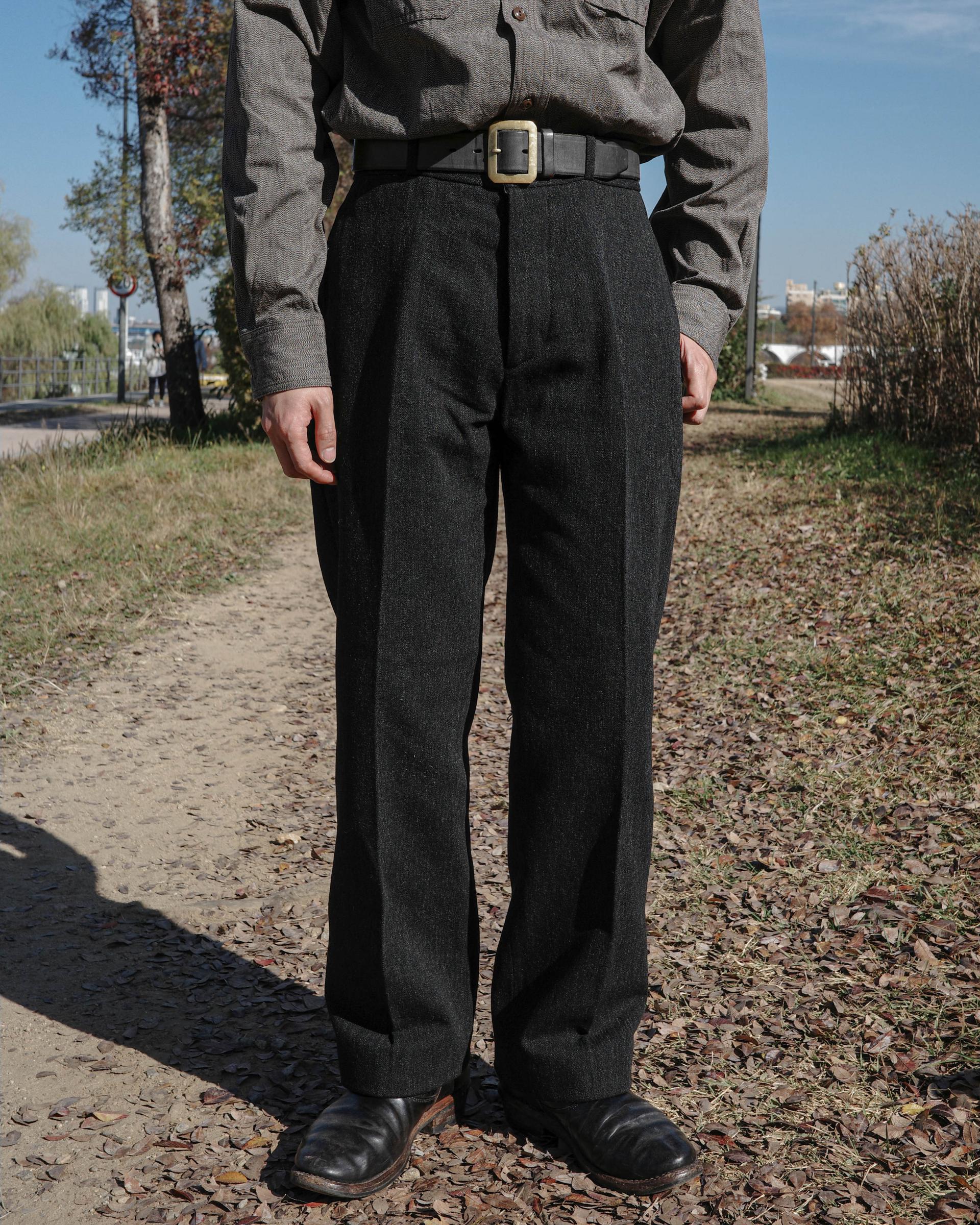 울코튼 소재의 밀리터리 서지 원단으로 제작된 트라우저입니다.