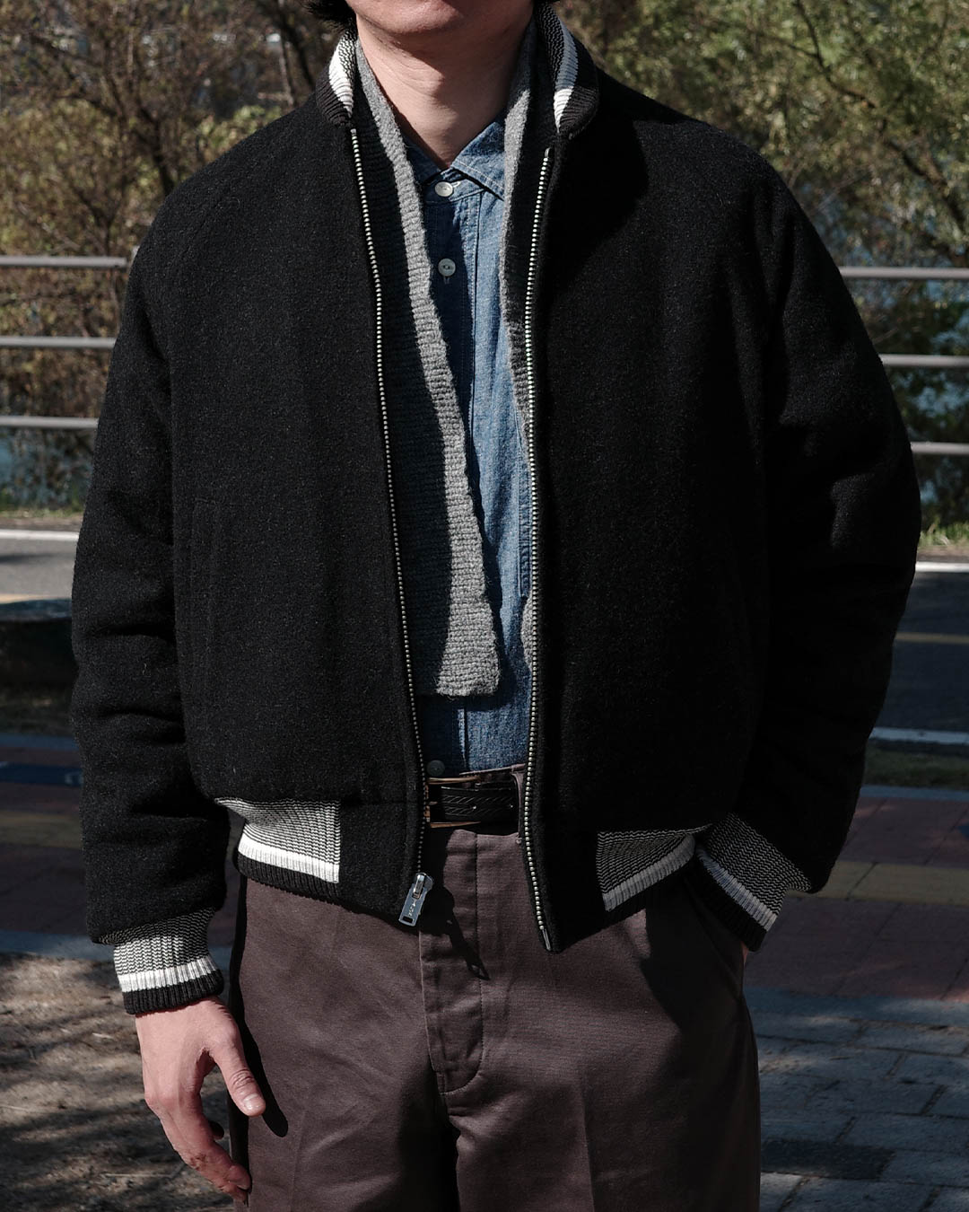 보온성을 높이기 위해 중솜 퀼팅 안감을 사용했으며, 브랜드 고유의 배색으로 완성한 헤비 코튼 립 디테일이 특징입니다.