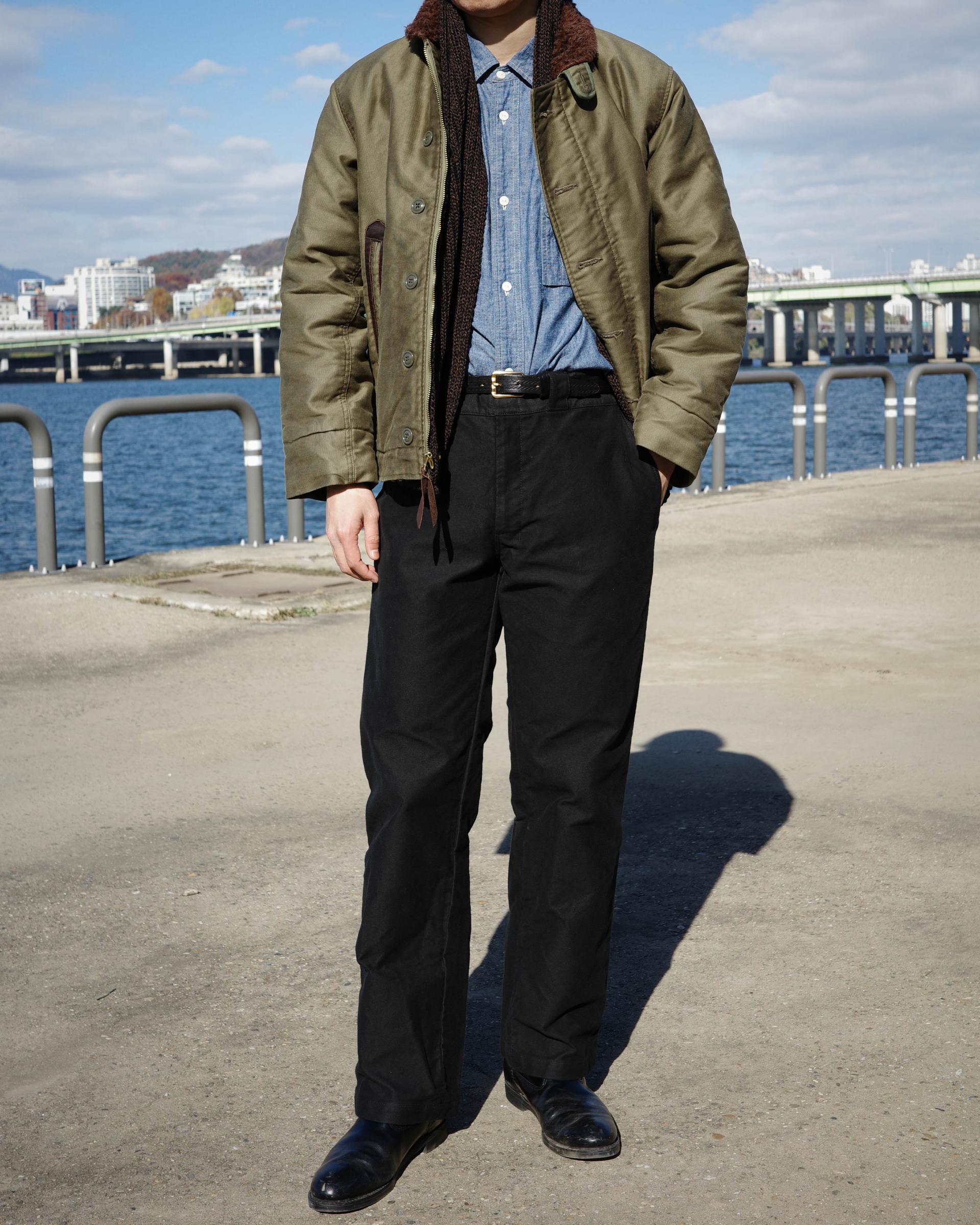 오리지널 몰스킨 원단으로 제작된 워크 팬츠입니다.