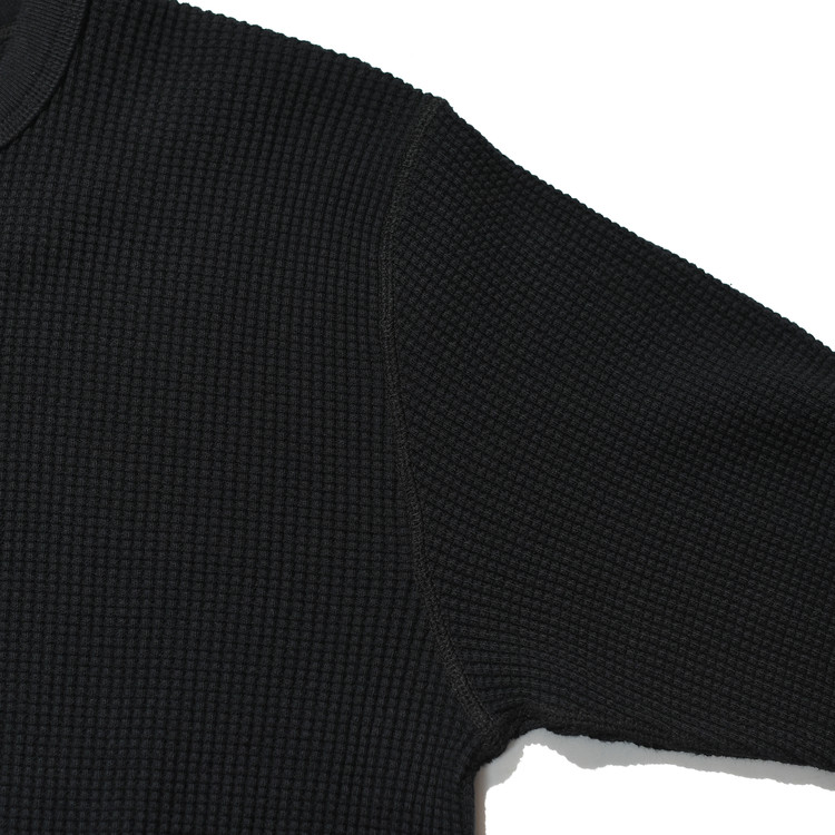 일반적인 헤비 써멀에 사용되는 30수보다 굵은 10수 실을 사용해 짜여진 원단은 크고 선명한 와플 조직이 특징이며,