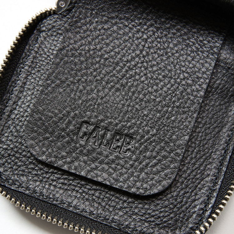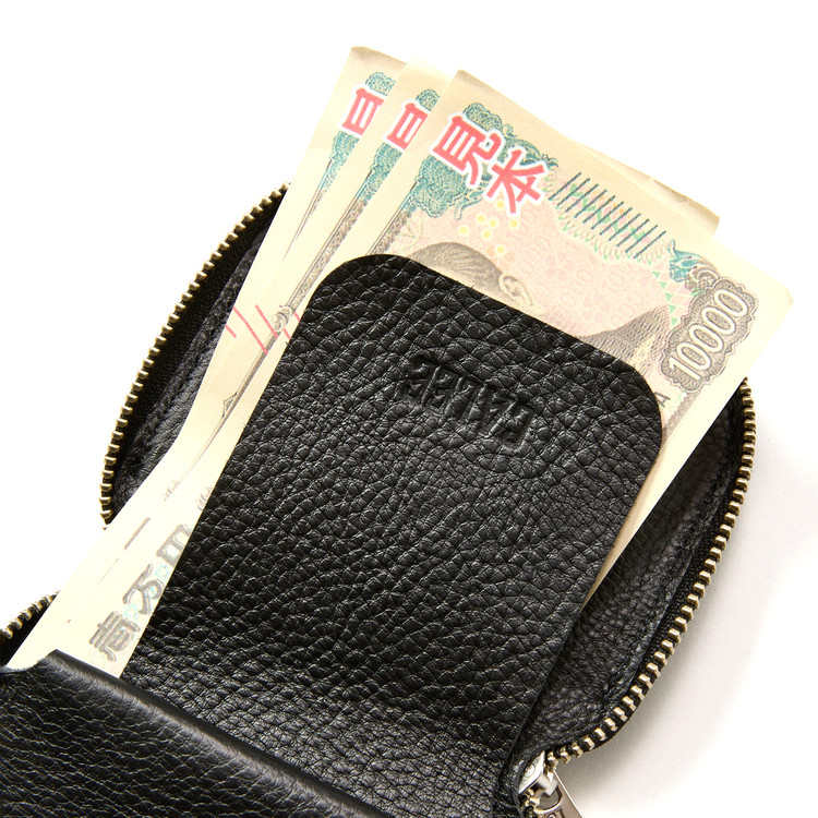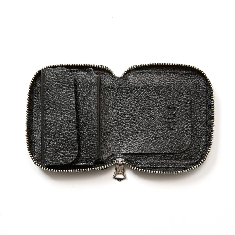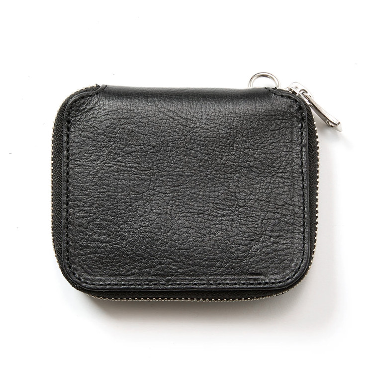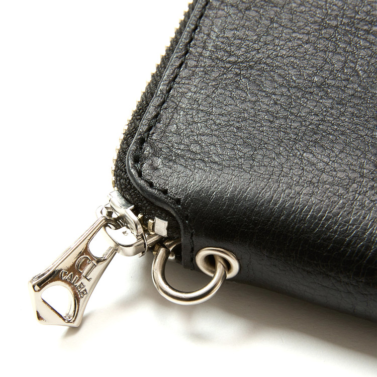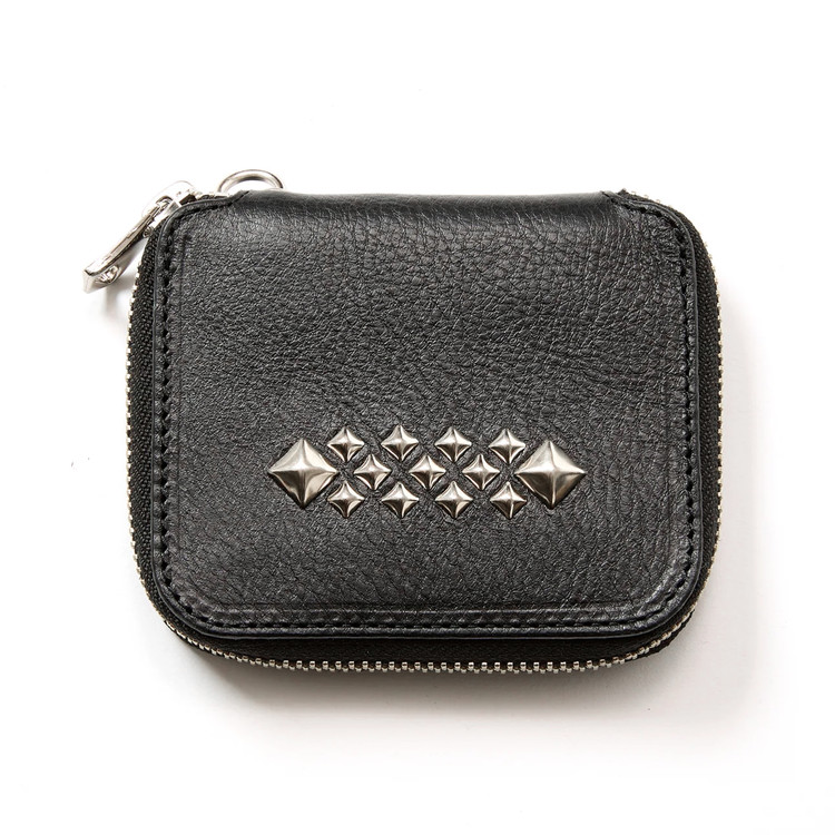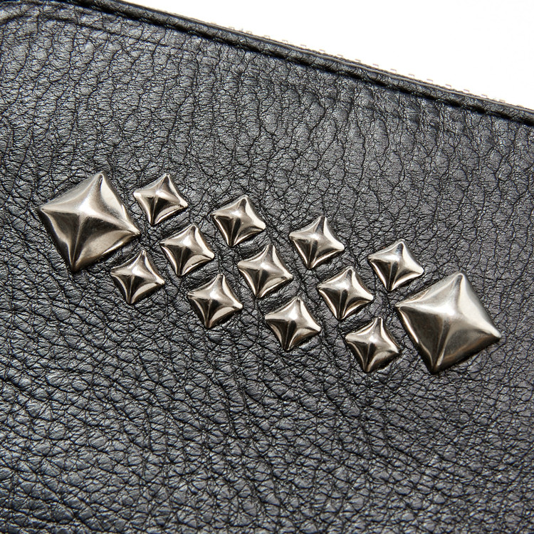입체적인 질감의 가죽에 스터드를 더해 완성한 반지갑 지퍼 지갑입니다.