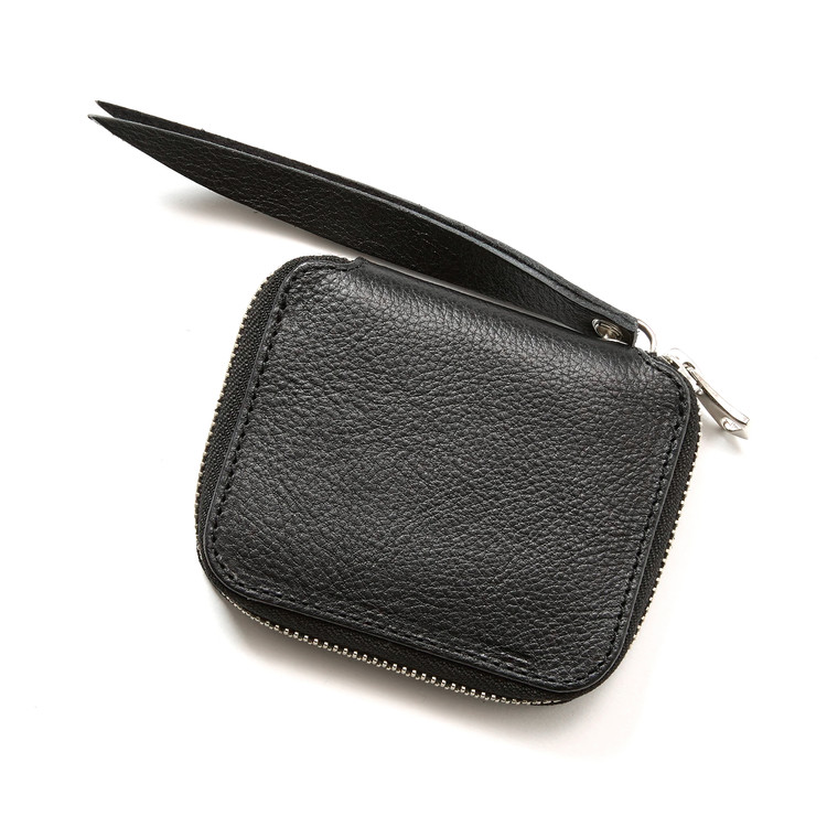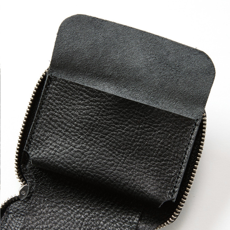 입체적인 질감의 가죽이 특징인 반지갑 지퍼 지갑