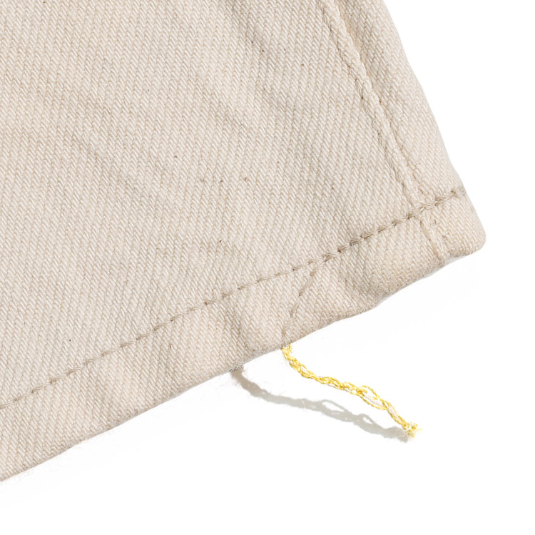 사용된 'Natural Denim' 은 경사 6/-, 위사 7/-로 구성된 13oz 셀비지 데님으로