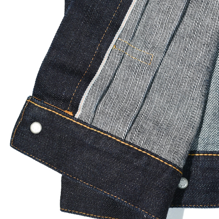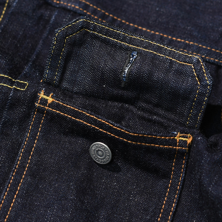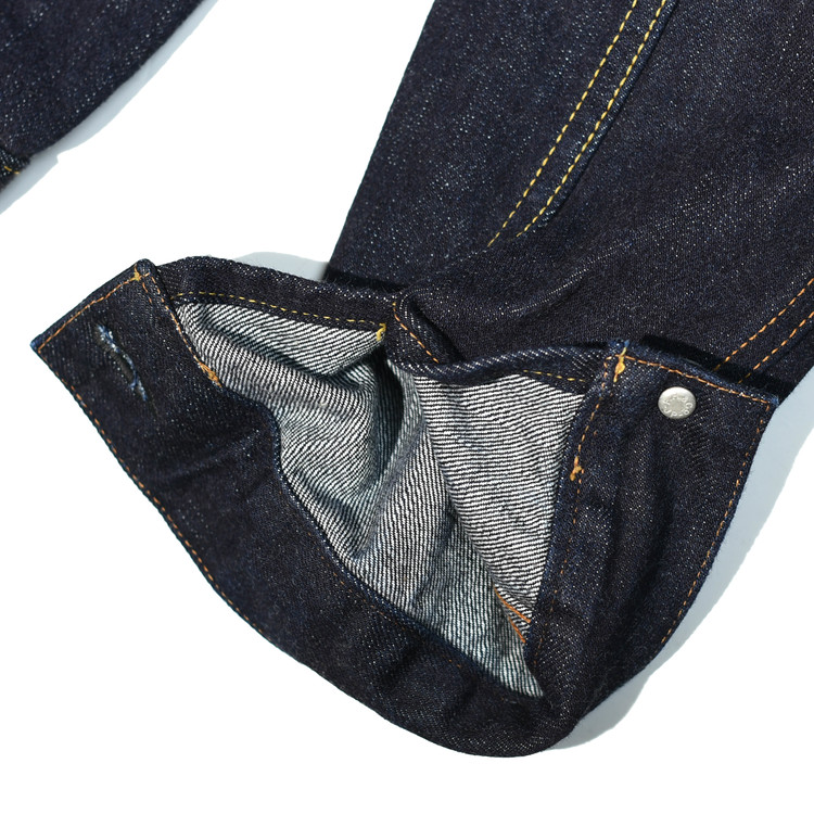 특유의 세로 페이드(타테오치, 縦落ち)를 즐길 수 있는 브랜드의 오리지날 14.5oz 셀비지 데님 원단을 사용,